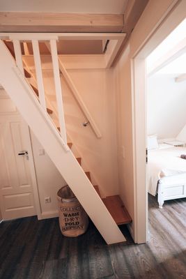 Im Obergeschoss befinden sich zwei komfortable Schlafzimmer mit hochwertigen Betten, die erholsame Nächte garantieren. Zwei moderne Badezimmer bieten zusätzlichen Komfort und Privatsphäre – besonders angenehm bei einem Aufenthalt mit mehreren Gästen. Fußbodenheizung im gesamten Haus, WLAN, Smart-TV sowie Waschtrockner sorgen dafür, dass es dir auch bei längeren Aufenthalten an nichts fehlt.