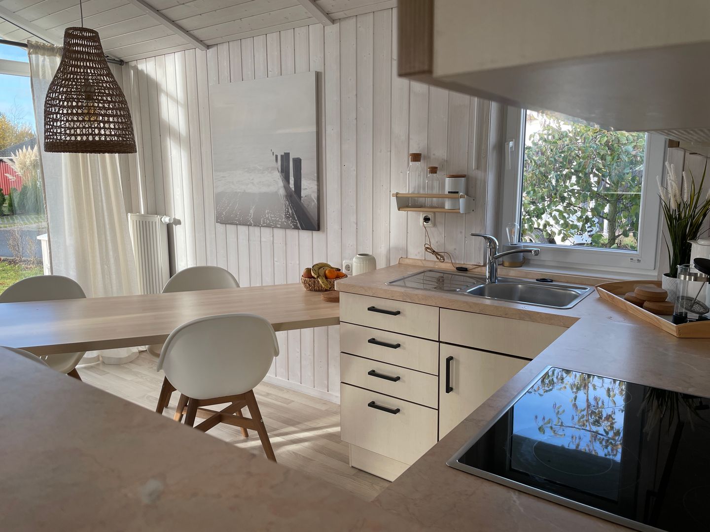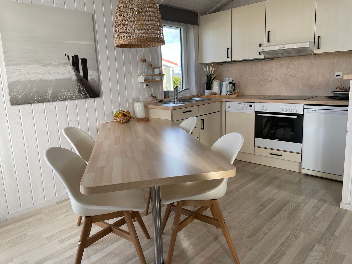 Das im Jahr 2011 errichtete und zuletzt 2021 renovierte Ferienhaus ist allergikerfreundlich gestaltet und verfügt über eine ebenerdige Raumaufteilung, die sich auf ein Wohnzimmer mit moderner Sofaecke, einen offenen Essbereich und eine offene, zum Wohnzimmer integrierte Küche verteilt. Die Böden sind mit pflegeleichtem Vinyl ausgestattet. Für wohlige Wärme sorgt eine Gasheizung, an kühleren Tagen steht Ihnen zusätzlich ein Kaminofen zur Verfügung.