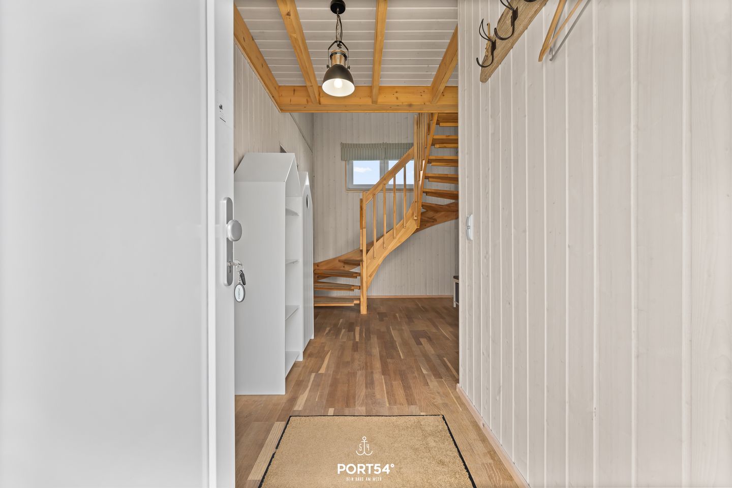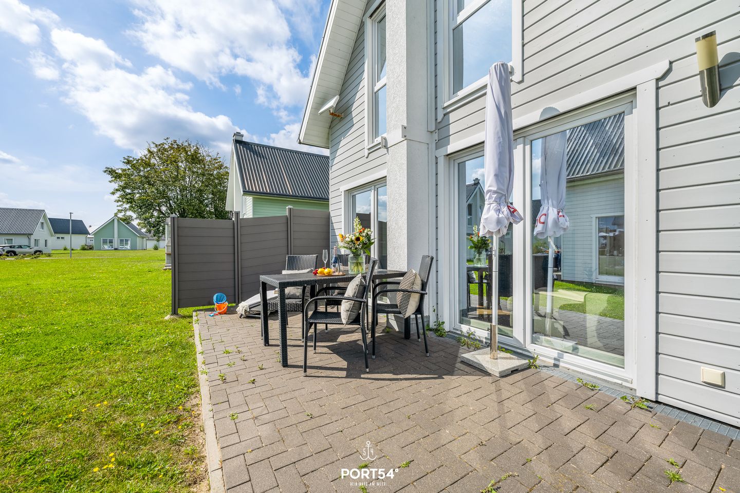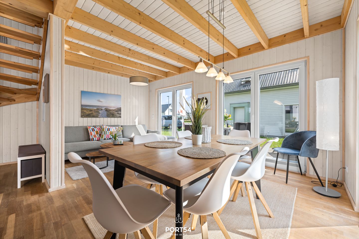 Willkommen im Ferienhaus "Skipper-Auszeit" in Olpenitz. Eintreten und der Urlaub kann beginnen. Das Haus besticht durch seine Lage im Grünen und der unmittelbaren Nähe zur Ostsee. Das Feriendomizil verfügt über einen offenen Wohn- und Essbereich, eine Küche, zwei Schlafzimmer und zwei Bäder. Durch die großen Fenster ist das Haus lichtdurchflutet und sorgt für ein großzügiges Wohngefühl. Nach langen Strandspaziergängen können Sie auf dem gemütlichen Sofa vor dem Kamin entspannen und Ihre Lieblingsserie auf dem Flachbild-TV schauen. Das Sofa lässt sich zu einer zusätzlichen Schlafgelegenheit (140x200cm) umfunktionieren. Für unsere kleinen Gäste wird ein Babyreisebett und ein Kinderhochstuhl zur Verfügung gestellt. Die voll ausgestattete Küche bietet alles, was Sie für einen geselligen Kochabend mit der Familie benötigen. Im ersten Obergeschoss befinden sich die zwei Schlafzimmer: Eines davon ist mit einem gemütlichen Boxspringbett (180x200cm) ausgestattet und das andere verfügt über zwei Boxspringbetten (je 90x200cm). Für erholsame Nächte sind beide Schlafzimmer mit Verdunkelungsmöglichkeiten ausgestattet. Ein Bad befindet sich im Erdgeschoss und ist mit einer ebenerdigen Dusche und dem Highlight, einer Infrarot-Sauna, ausgestattet. Hier können Sie sich an kalten Tagen aufwärmen und entspannen. Ein weiteres Badezimmer im ersten Obergeschoss bietet eine Badewanne. Beide Bäder verfügen über Fenster mit Sichtschutz und Handtuchheizkörper. An sonnigen Tagen können Sie es sich auf der möblierten Terrasse gemütlich machen und den Tag entspannt ausklingen lassen. Ihre Fellnase können Sie gerne mitbringen. Für Ihren PKW steht Ihnen ein eigener Stellplatz vor dem Haus zur Verfügung.