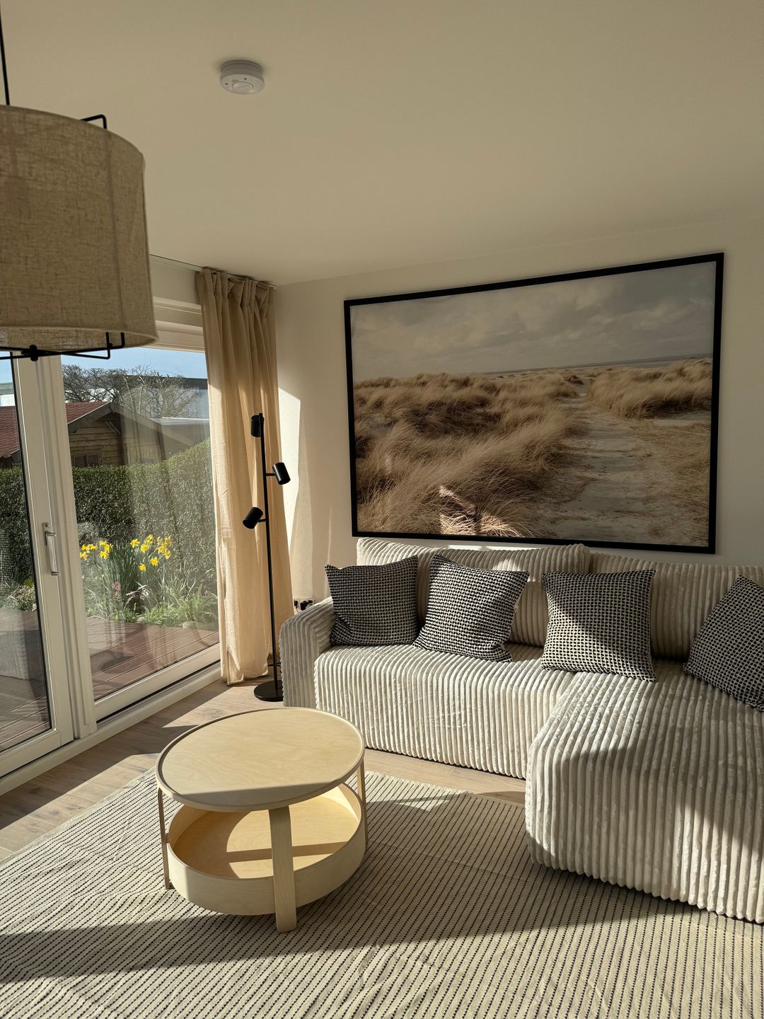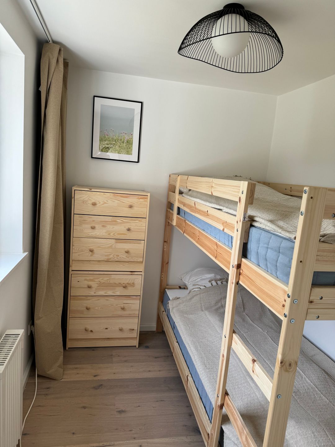 Der komfortabel gestaltete Innenbereich gliedert sich in insgesamt drei Zimmer, darunter zwei separate Schlafzimmer (eines mit Doppelbett und eines mit Etagenbett) und ein gemütliches Wohnzimmer mit Sofaecke, Esstisch, Sessel und TV. Die offene Küche ist zum Wohnbereich hin ausgerichtet und modern ausgestattet: Neben Ceran-Herd, Backofen, Mikrowelle, Spülmaschine und Kühlschrank mit Gefrierfach finden Sie hier eine klassische Kaffeemaschine und eine Nespresso-Espressomaschine – ideal für gelungene Urlaubstage mit individuellen Genussmomenten. Ein Wasserkocher und Toaster stehen ebenfalls zur Verfügung.