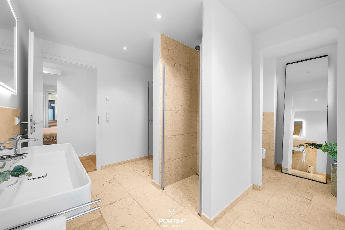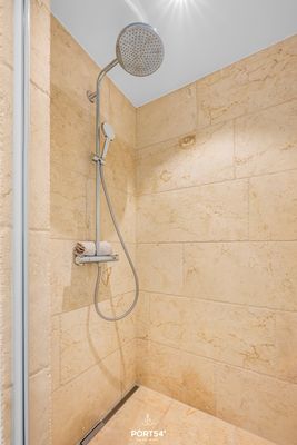 Zwei moderne Bäder sorgen für den täglichen Komfort. Beide sind mit ebenerdigen Duschen ausgestattet, die den Raum großzügig und einladend wirken lassen. Das erste Bad ist besonders luxuriös mit einer eigenen finnischen Sauna, die zu jeder Jahreszeit zu purer Entspannung einlädt – ideal nach einem erfrischenden Strandspaziergang. Im zweiten Bad steht ein praktischer Waschtrockner bereit, der es Ihnen ermöglicht, Ihre Wäsche bequem zu waschen und zu trocknen – ohne Kompromisse bei Ihrem Komfort.