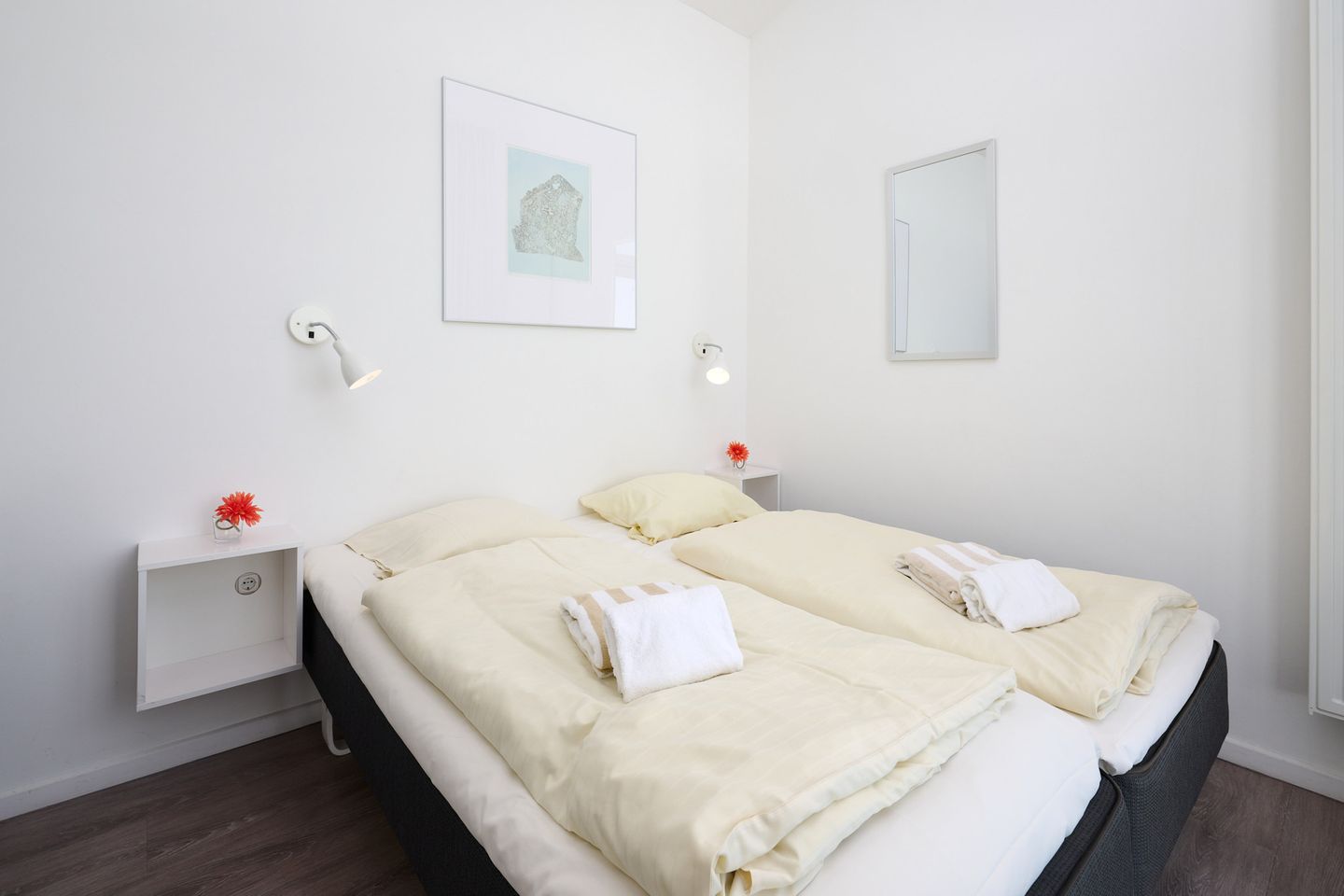 Schlafzimmer 1: Doppelbett (2x 90x200 cm), Kleiderschrank, TV, Bad, Verdunkelung: Vorhänge, Bad mit Dampfsauna und Whirlpool