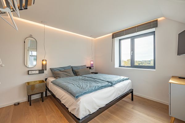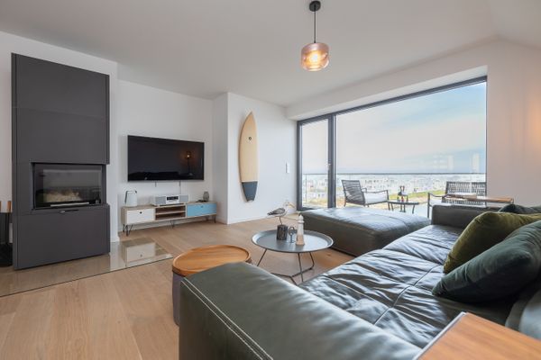 Die Ferienwohnung "Rooftop Garden 6" in Olpenitz begrüßt Sie in toller Lage direkt an der Hafenpromenade von Olpenitz und überzeugt auf ganzer Linie mit ihrer modernen Ausstattung und exklusiven Details. Mit einer Wohnfläche von 127m² bieten sich ideale Voraussetzungen für bis zu 6 Personen, die Wert auf Komfort, Entspannung und ein stilvolles Interieur legen. Die Maisonettewohnung befindet sich im 2. Stock eines modernen Gebäudes und ist bequem über einen Aufzug erreichbar. Der offen gestaltete Wohn- und Essbereich bildet das Herzstück der Wohnung. Die moderne Küche ist zum Wohnzimmer hin offen gehalten und überzeugt durch eine umfassende Ausstattung: Neben einem Induktionsherd (2 Platten), Toaster und Spülmaschine finden Sie hier auch eine Espresso- und eine Kaffeemaschine, einen Sandwichmaker, Mixer und Pürierstab sowie sämtliche Küchenutensilien, Geschirr und Besteck für ein komfortables Kocherlebnis. Für gemütliche Stunden sorgt ein Kaminofen und eine Smart-TV im Wohnzimmer. Insgesamt verfügt die Ferienwohnung über zwei komfortable Schlafzimmer und eine Empore mit hochwertigen Möbeln. Bis zu sechs Personen finden hier angenehme Schlafmöglichkeiten. Beide Schlafzimmer verfügen über je ein Doppelbett (180x200cm), Verdunkelungsmöglichkeiten, Insektenschutzgitter sowie je ein Smart-TV. Eines der Schlafzimmer bietet einen Kleiderschrank, das andere eine Kommode. Für Familien stehen ein Kinderhochstuhl und ein Babybett bereit. Im Tageslicht-Bad erwartet Sie eine bodengleiche Dusche, ein Föhn sowie ein Kosmetikspiegel, zudem ist ein separates Gäste-WC vorhanden. Wellness-Liebhaber profitieren von einer finnischen Sauna, die ausschließlich exklusiv für Sie zur Verfügung steht. Für einen angenehmen Aufenthalt sorgen darüber hinaus WLAN, ein Soundsystem, Fußbodenheizung, Waschmaschine, Trockner sowie Bügeleisen und -brett. Besonders hervorzuheben ist der beeindruckende Meerblick, den Sie von Ihrem Balkon aus genießen können. Zum Außenbereich zählt ebenfalls die gemeinschaftliche Dachterrasse, die mit Gartenmöbeln und einem Strandkorb ausgestattet ist, sodass Sie entspannte Stunden im Freien verbringen und das maritime Flair auf sich wirken lassen können. Ein Gasgrill steht zudem zur gemeinschaftlichen Nutzung zur Verfügung, um gesellige Grillabende zu erleben. Es kann außerdem der gemeinschaftliche, abschließbare Fahrradschuppen genutzt werden. Der zur Wohnung gehörende Privatparkplatz vor der Unterkunft sowie ein Carport und eine Elektroauto-Ladestation stehen Ihnen zur Verfügung. Ferner erreichen Sie Einkaufsmöglichkeiten und Restaurants in unmittelbarer Umgebung. Die Vielfalt an Freizeitgestaltungsmöglichkeiten in der Umgebung ist bemerkenswert: Angeln, Segeln, Schwimmen, Radfahren, Nordic Walking, Wasserski und zahlreiche weitere Aktivitäten lassen keine Wünsche offen. Genießen Sie in dieser exklusiven Ferienwohnung einen angenehmen Aufenthalt in erstklassiger Lage mit umfassender, moderner Ausstattung und maritimem Ambiente.