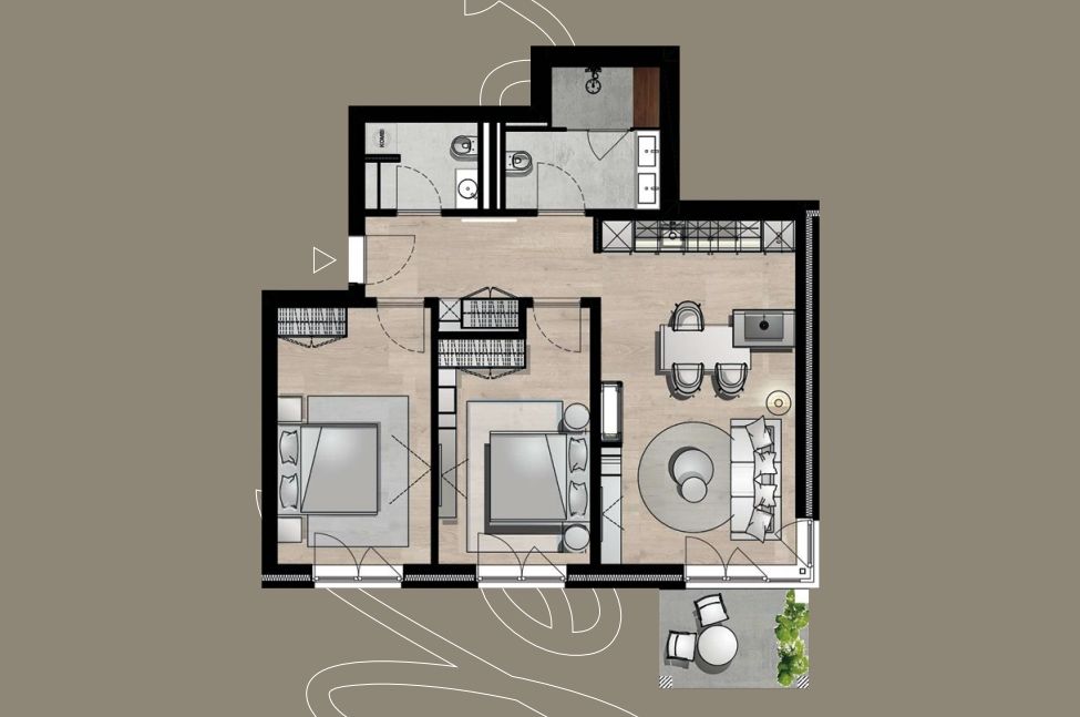 Die moderne Unterkunft umfasst zwei stilvoll eingerichtete Schlafzimmer mit je einem Doppelboxspringbett der Marke Schramm (180x200 cm). Die große Fensterfront in der Suite sorgt für reichlich Tageslicht und einen einladenden Blick auf die Umgebung. Zur Ausstattung gehört ein luxuriöses Badezimmer mit bodengleicher Dusche und integriertem Infrarotpaneel, das nach einem erlebnisreichen Tag für wohltuende Entspannung sorgt. Ein zusätzliches Gäste-WC sorgt für zusätzlichen Komfort, ebenso wie ein Waschtrockner.