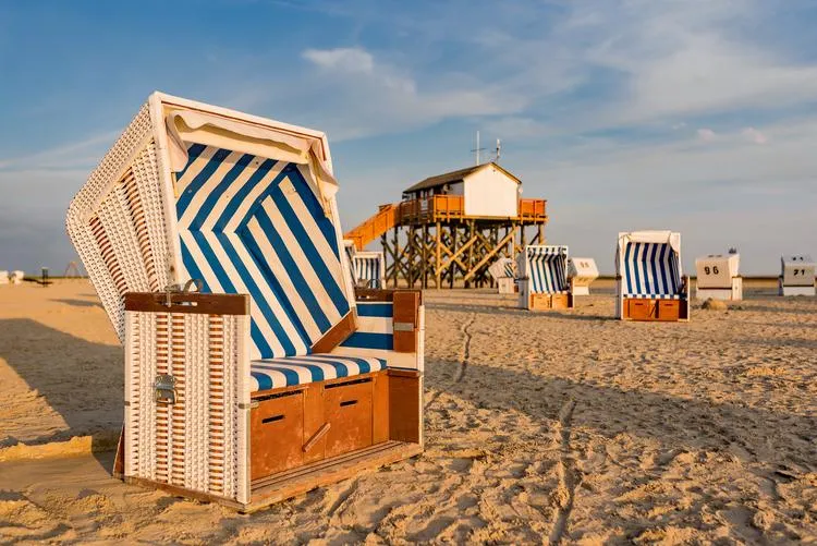 Der Strand in Sankt Peter-Ording erstreckt sich über 12 Kilometer Länge und erreicht eine Breite von bis zu 2 Kilometern, was ihn zu einem der größten und beeindruckendsten Strände an der Nordseeküste macht. Zudem befinden sich entlang des Strandes zahlreiche Pfahlbauten, die das perfekte Fotomotiv für deinen Nordsee-Urlaub sind.
