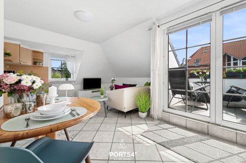 Vom Wohnbereich aus gelangst Du auf den Balkon.