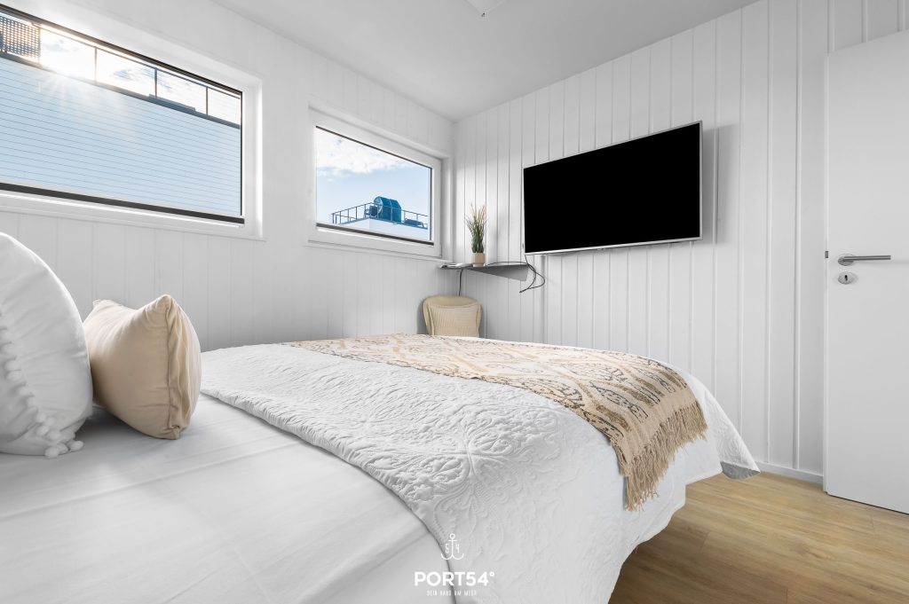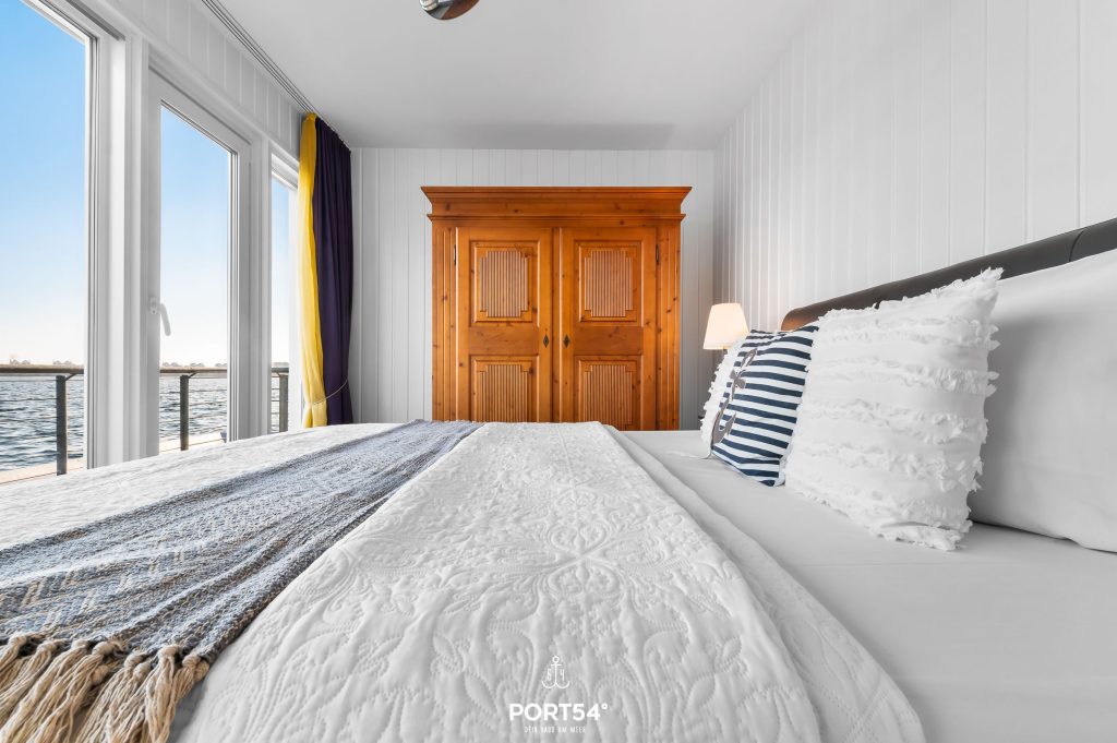 Von diesem Schlafzimmer aus gelangst Du direkt auf die Terrasse und kannst nach dem Aufstehen die frische Seeluft einatmen.