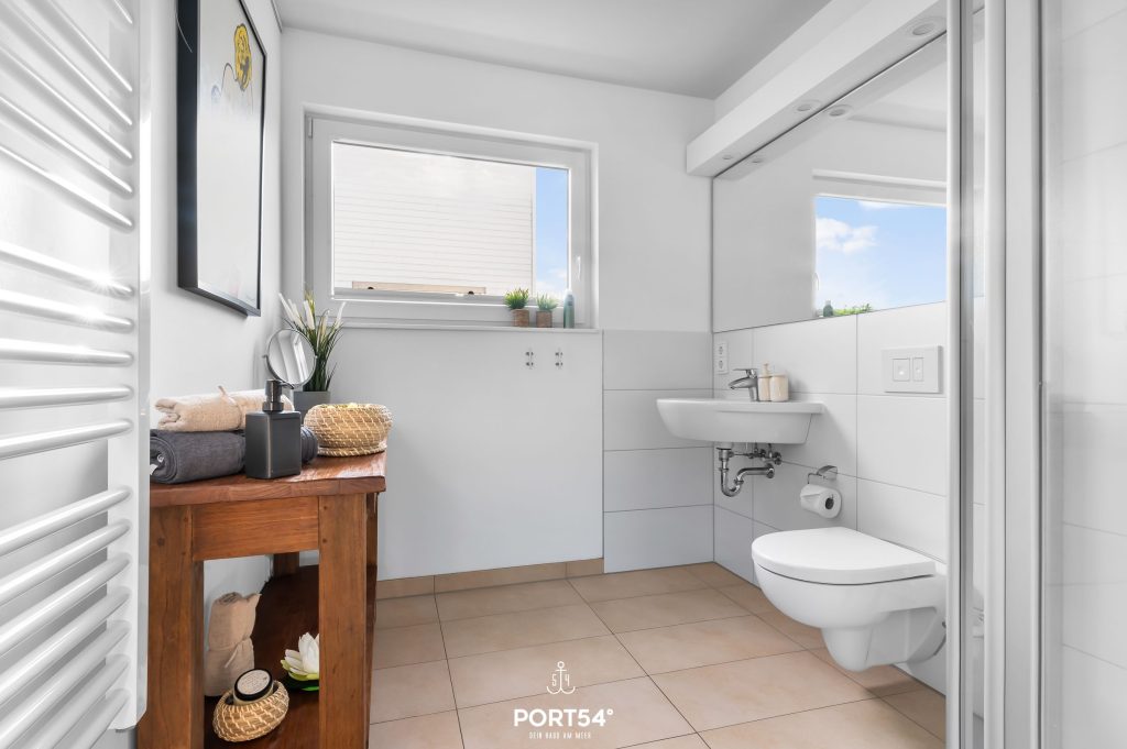 Das Tageslichtbad sorgt mit der bodengleichen Dusche für höchsten Komfort.