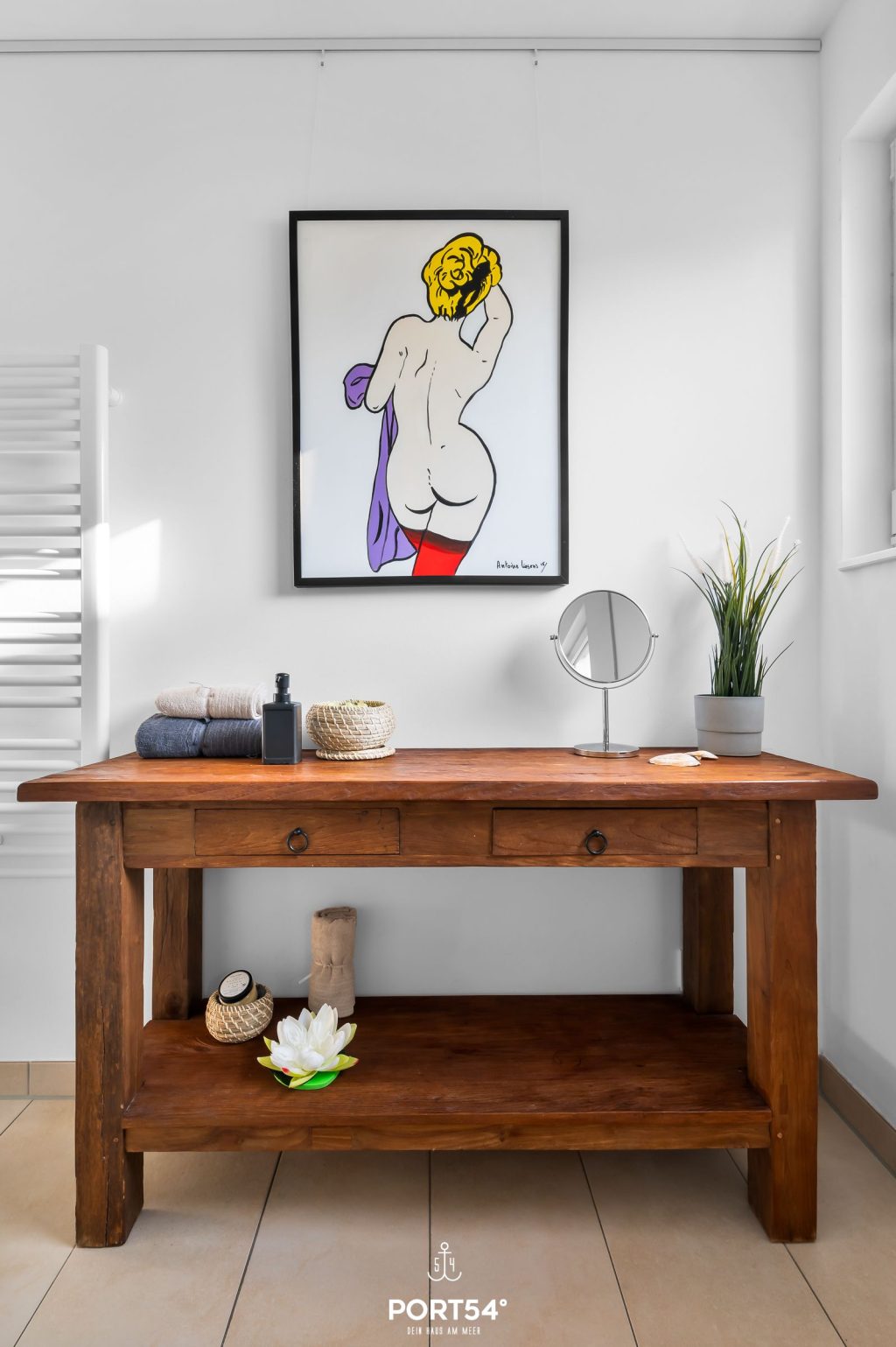 Außerdem stehen Dir ein Handtuchheizkörper, ein Kosmetikspiegel und ein Fön zur Verfügung.