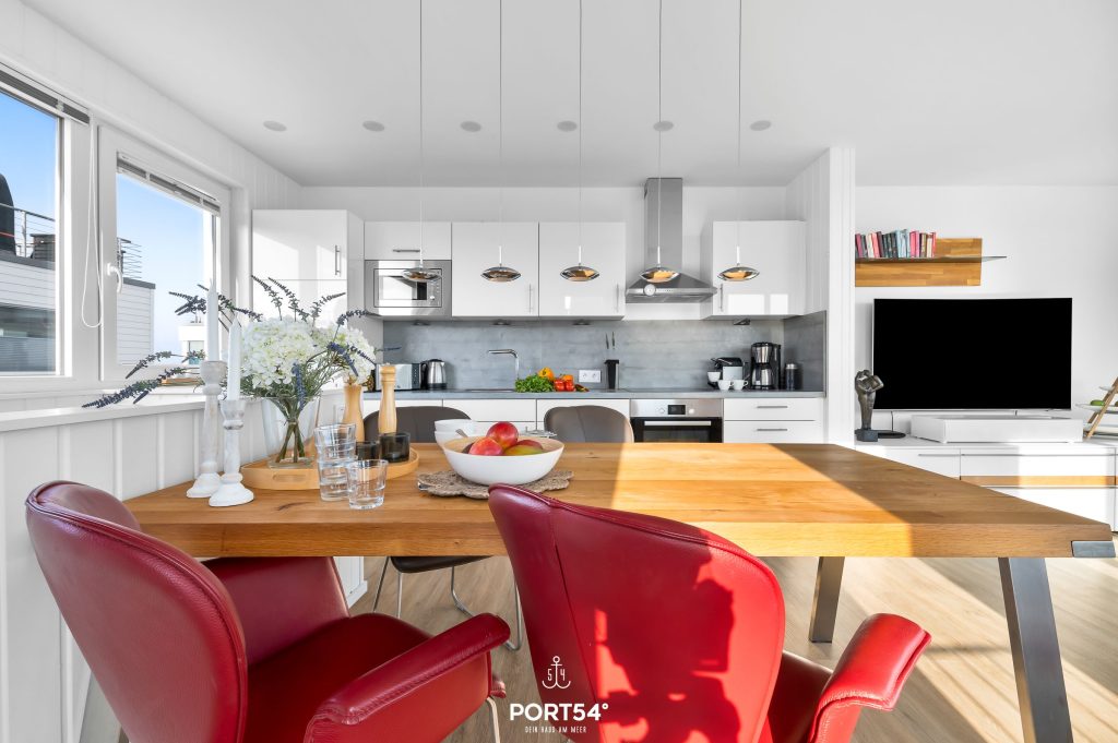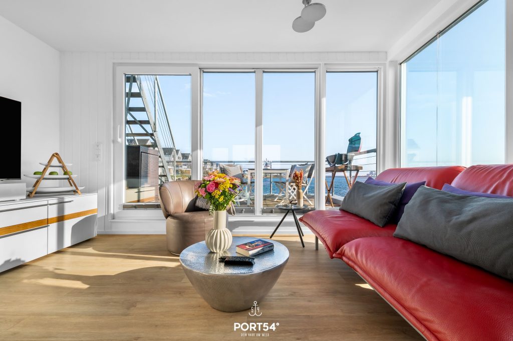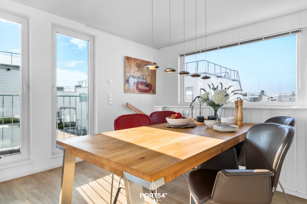 Das Highlight ist zweifellos die großzügige Dachterrasse, die Dir einen unvergleichlichen 360°-Panoramablick über die Schlei, die Ostsee sowie das malerische Hafenbecken des OstseeResorts Olpenitz ermöglicht.