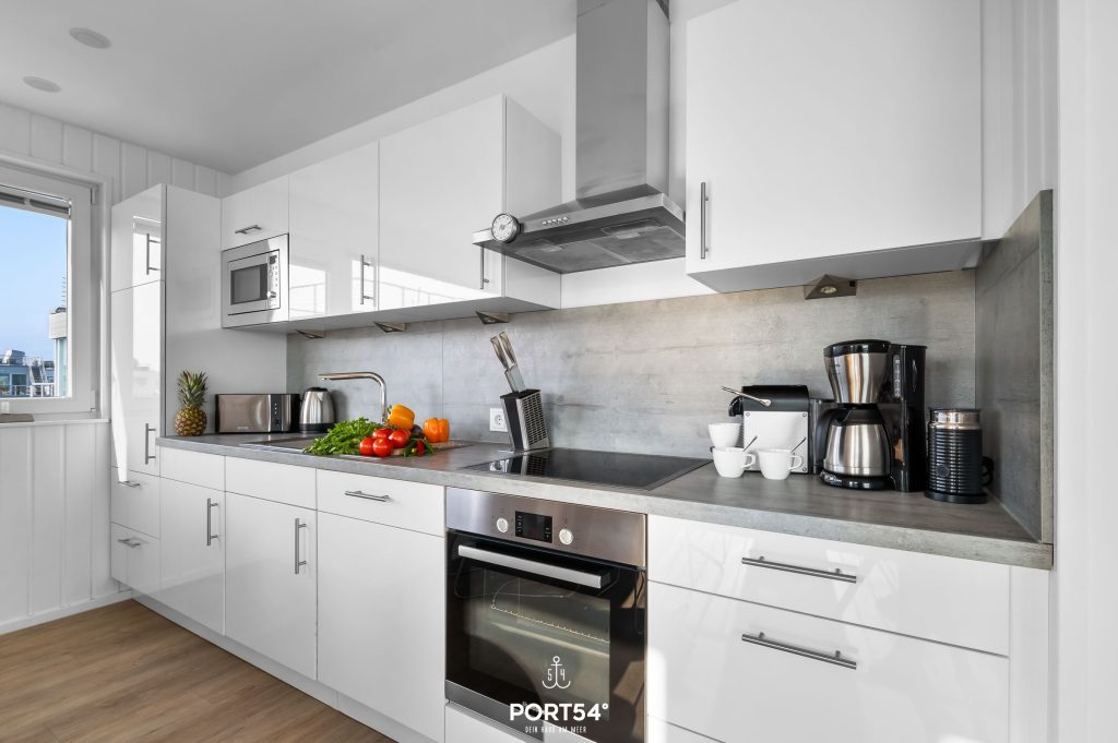 Die offene Küche ist mit Espressomaschine, Induktionsherd und vielem mehr bestens ausgestattet.
