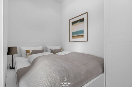 Im zweiten Schlafzimmer befindet sich ein kleines Boxspring-Doppelbett (160x200cm), das ebenfalls hohen Schlafkomfort bietet.
