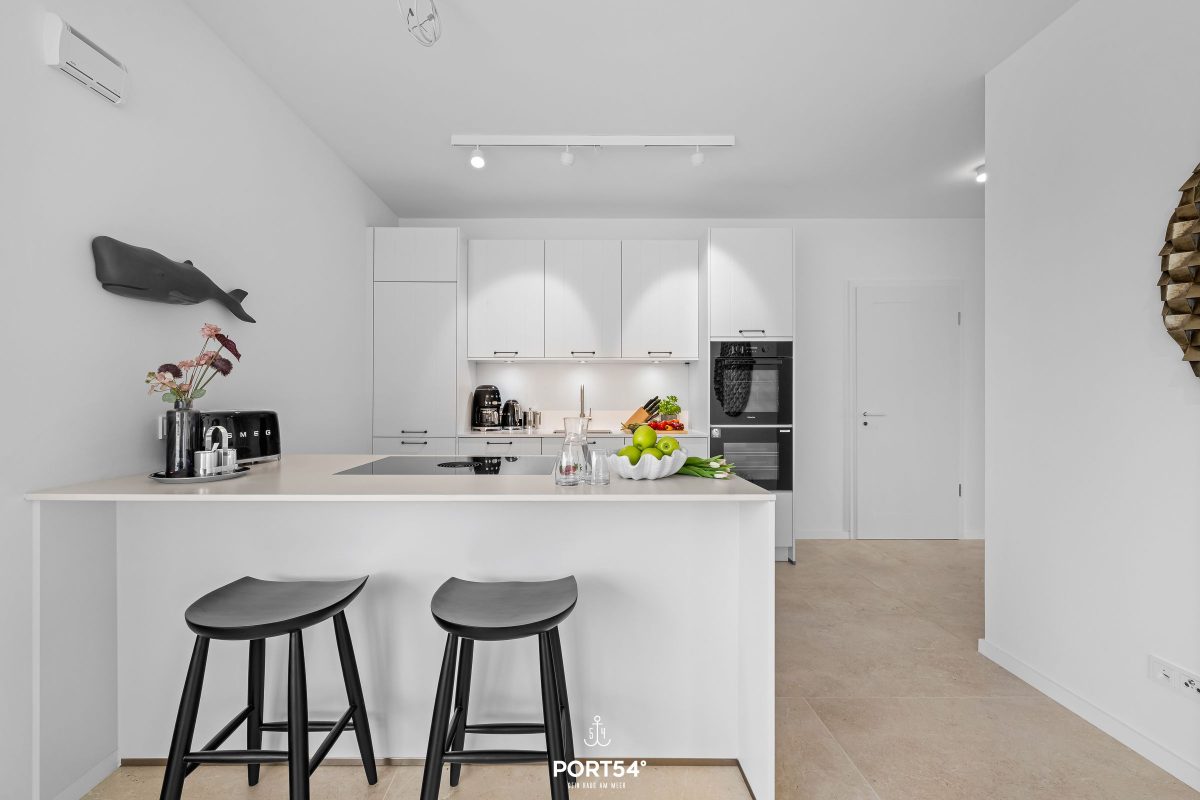Die moderne, offen integrierte Küche bietet alles für einen perfekten Kochabend. Sie verfügt unter anderem über ein Induktionskochfeld, Backofen, Mikrowelle, Weinkühlschrank, Geschirrspüler sowie einen Kühlschrank mit Gefrierfach. Ergänzt wird die Ausstattung durch Wasserkocher, Toaster, Kaffeemaschine und eine Nespresso-Espressomaschine. Der angrenzende Essbereich mit Esstisch schafft den perfekten Rahmen für gemeinsame Mahlzeiten.