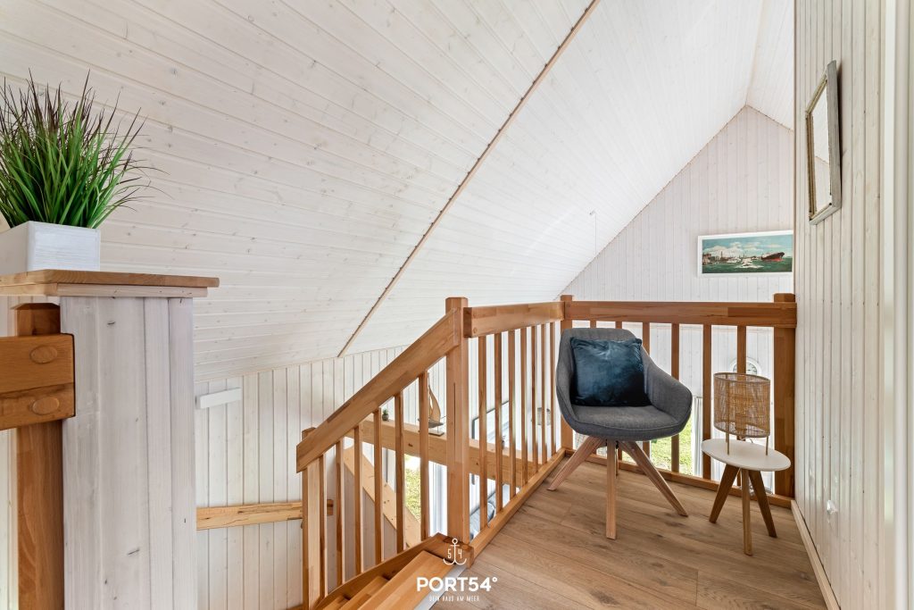Genieße die Sonne auf der großen Südwest-Terrasse, umgeben von charmantem Pampasgras. Entspanne Dich auf den stilvollen Holzmöbeln oder im gemütlichen Strandkorb. Vier Sonnenliegen...