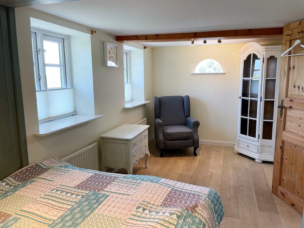 Willkommen im Ferienhaus Dat groote Diekhuus in Rodenäs, einer einladenden Oase, die sich ideal für Familien, Paare und Erholungssuchende eignet. Eingebettet in die malerische Umgebung der norddeutschen Landschaft, bietet dieses freistehende Haus mit Landschaftsblick alles, was Sie für einen unvergesslichen Aufenthalt benötigen. Das großzügige Ferienhaus bietet Platz für bis zu sechs Personen und verfügt über insgesamt drei Schlafzimmer sowie zwei Badezimmer. Das lichtdurchflutete Wohnzimmer lädt zum Verweilen ein und ist mit einem Kaminofen ausgestattet, der an kühleren Tagen für eine behagliche Atmosphäre sorgt. Für Ihre Unterhaltung steht Ihnen hier ein Fernseher und ein WLAN-Anschluss zur Verfügung, während die gemütliche Sitzecke mit einem Sofa und Sessel zum Entspannen einlädt. Die moderne Küche ist mit hochwertigen Geräten ausgestattet, darunter ein Elektroherd, ein Backofen, eine Mikrowelle, eine Spülmaschine sowie alle notwendigen Küchenutensilien. Hier können Sie gemeinsam am Esstisch kulinarische Köstlichkeiten zubereiten und genießen. Zudem ist die Unterkunft mit einer Waschmaschine ausgestattet, die Ihnen während Ihres Aufenthalts hervorragenden Service bietet. In jedem der drei Schlafzimmer finden Sie ien Doppelbett, dass für entspannte Nächte sorgt. Zudem sind in jedem Schlafzimmer ein Kleiderschrank sowie Nachttischlampen vorhanden. Für zusätzlichen Komfort hat eines der Schlafzimmer einen weiteren TV. Das Ferienhaus bietet Ihnen eine herrliche Terrasse mit Gartenmöbeln samt Strandkorb, wo Sie entweder beim Frühstück die Morgenluft genießen oder abends in einer entspannten Atmosphäre den Tag ausklingen lassen können. Der Garten ist ideal für Familien mit Kindern und bietet ausreichenden Platz zum Spielen und Entspannen. Auch Haustiere sind herzlich willkommen, sodass Ihre vierbeinigen Freunde ebenfalls Teil des Urlaubs sein können. Für Ihre Anreise steht Ihnen ein hauseigener Privatparkplatz mit Platz für bis zu drei Fahrzeuge zur Verfügung, und auch eine Elektroauto-Ladestation ist vorhanden. Die Lage des Ferienhauses ist optimal, um die unberührte Natur zu erkunden. In unmittelbarer Nähe können Sie zahlreiche Aktivitäten wie Radfahren, Joggen, Wandern und Vogelbeobachtung genießen. Die Küste ist nur eine kurze Autofahrt entfernt, wo Sie Wassersportarten nachgehen können. Zudem laden verschiedene Touristenattraktionen in der Umgebung zu Ausflügen ein. Das Ferienhaus "Dat groote Diekhuus" vereint modernen Komfort mit ländlichem Charme und schafft damit den perfekten Rückzugsort für Ihren nächsten Urlaub an der Nordsee. Erleben Sie die vielfältigen Möglichkeiten, die diese idyllische Region zu bieten hat, und genießen Sie unbeschwerte Tage mit Ihrer Familie oder Freunden. Sichern Sie sich jetzt Ihren Aufenthalt in diesem bezaubernden Ferienhaus und genießen Sie entspannte Tage in Rodenäs.
