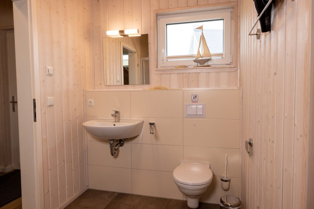 Ein Badezimmer mit Fenster inkl. Sichtschutz befindet sich im Erdgeschoss und ist mit einer Dusche, einer Handtuchheizung und dem Highlight: einer Infrarot-Sauna ausgestattet. Hier kannst Du Dich an kalten Tagen aufwärmen und entspannen. Ein weiteres Badezimmer, ebenfalls mit Fenster inkl. Sichtschutz, befindet sich im Obergeschoss und bietet ebenfalls eine Handtuchheizung und eine Duschwanne.