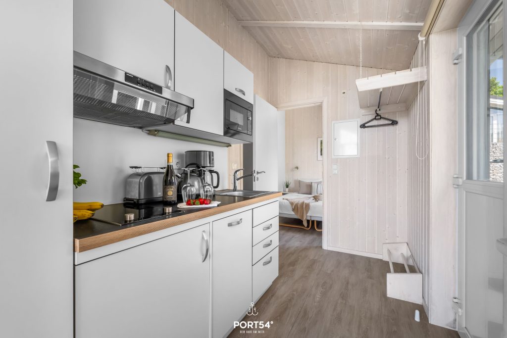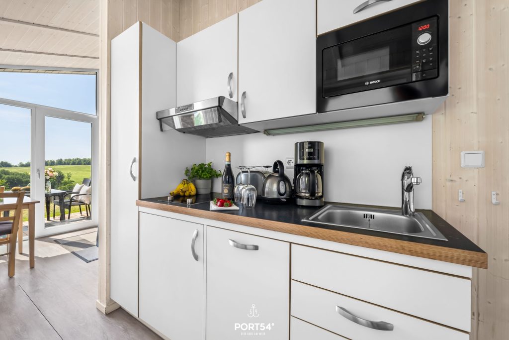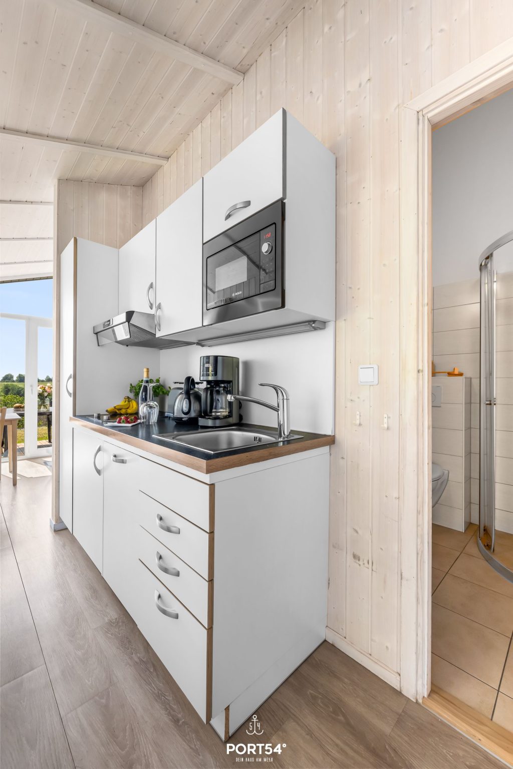 Die angrenzende, kompakte Küche ist bestens ausgestattet und bietet alles, was du brauchst, um gemeinsam zu kochen und kulinarische Genüsse zu zaubern. Der kleine, gemütliche Essbereich lädt zu genussvollen Mahlzeiten und langen Gesprächen ein – ein perfekter Ort, um den Tag Revue passieren zu lassen. Die Küche ist ausgestattet mit 2-Platten-Cerankochfeld, Kühlschrank mit Gefrierfach, Mikrowelle und Kaffeemaschine.