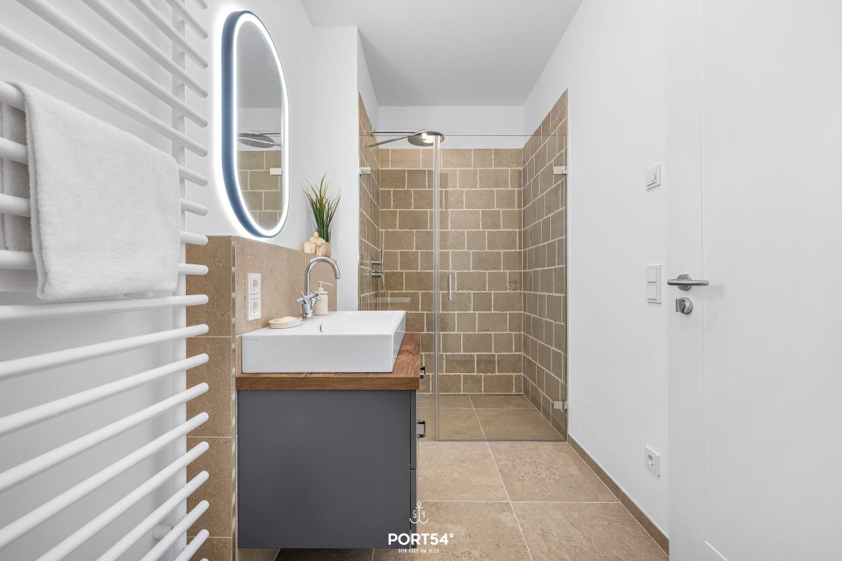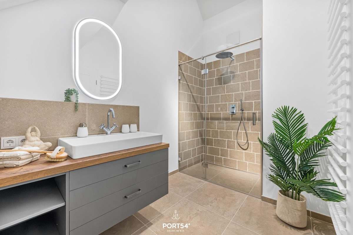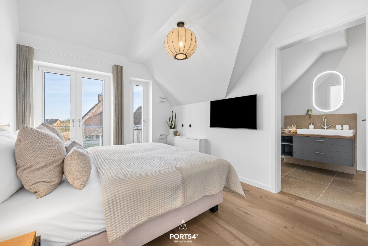 Besondere Wohlfühlmomente bietet die private Finnische Sauna, während die Fußbodenheizung im gesamten Haus für ein angenehmes Raumklima sorgt. Die Badezimmer sind hochwertig ausgestattet und verfügen über zwei bodengleiche Duschen. Ergänzt wird dies durch moderne Waschbecken, WCs, Spiegel, Kosmetikspiegel und Haartrockner. Bettwäsche, Handtücher sowie eine Erstausstattung sind bereits inklusive.