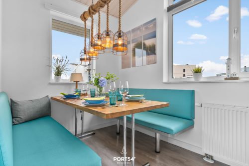 Nach langen Strandspaziergängen kannst Du auf dem gemütlichen Sofa vor dem Kamin entspannen und Deine Lieblingsserie auf dem Flachbild-TV schauen. Die Couch lässt sich mit wenigen Handgriffen zu einem Schlafsofa umfunktionieren, so dass noch für zwei Kinder ein Schlafplatz zur Verfügung steht. Für die Kleinen steht ein Babybett und ein Kinderhochstuhl bereit. Die Küche bietet alles, was Du für einen geselligen Kochabend mit der Familie benötigst.