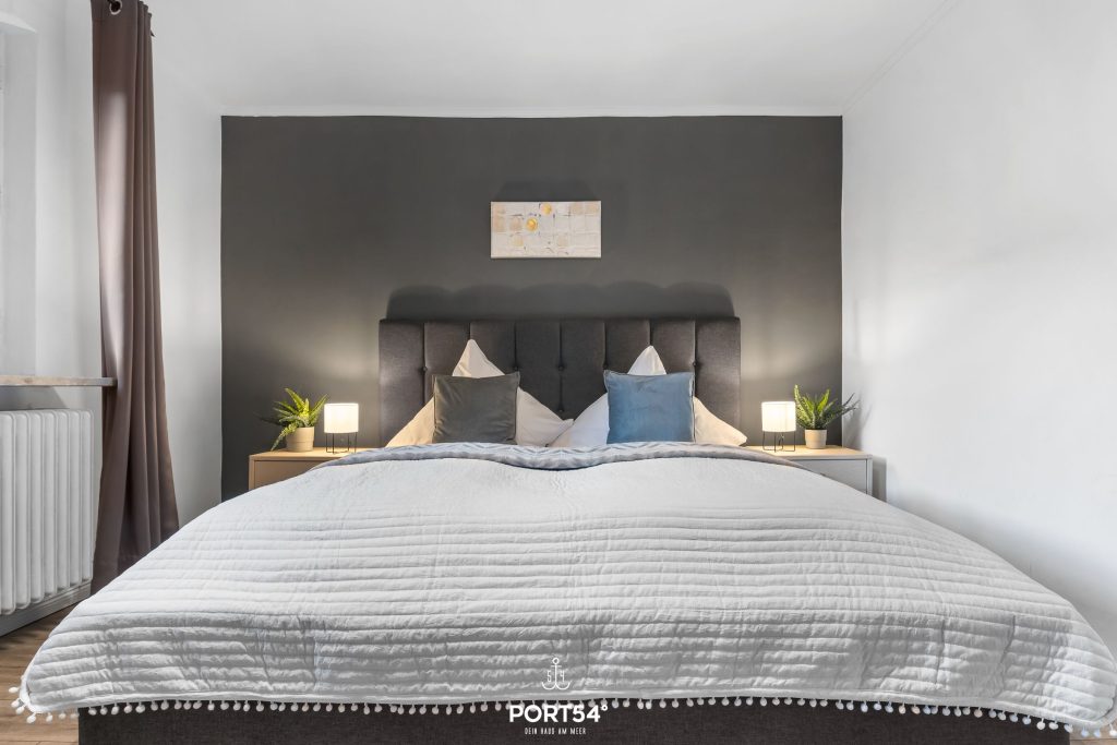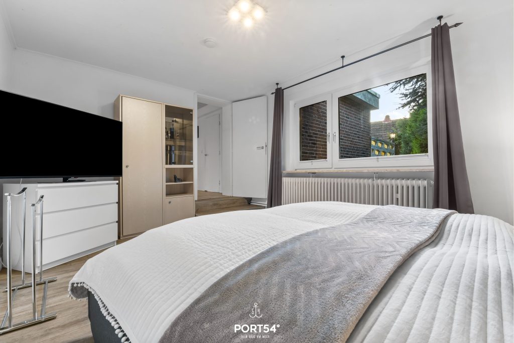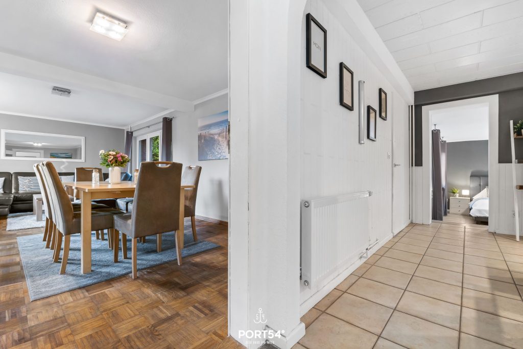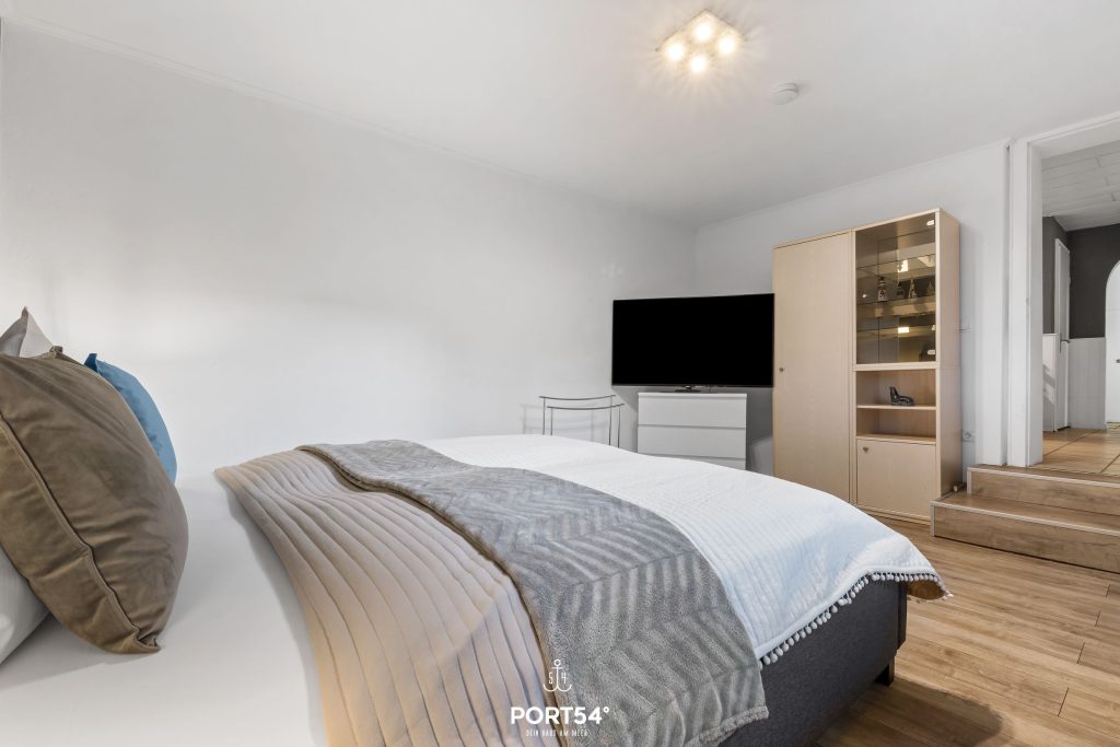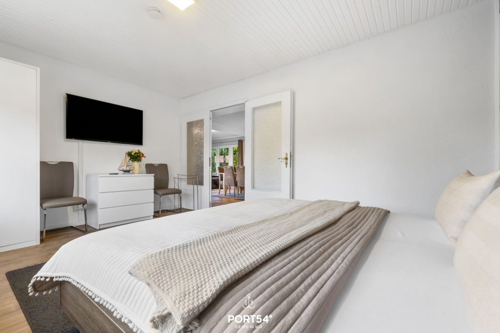 Das Erdgeschoss verfügt über ein geräumiges Wohnzimmer mit einer großen Couch für entspannte Abende, einen geräumigen Essbereich und Zugang zu einem Schlafzimmer mit Doppelbett (180x200cm) und der möblierten Terrasse mit Holzkohlegrill. Vom Flur aus erreicht man eine separate, gut ausgestattete Küche mit anschließender Abstellkammer. Die Küche hat einen direkten Zugang zur Terrasse. 2 weitere Schlafzimmer (140x200cm und 180x200cm) sowie ein Gäste-WC ergänzen das Untergeschoss.
