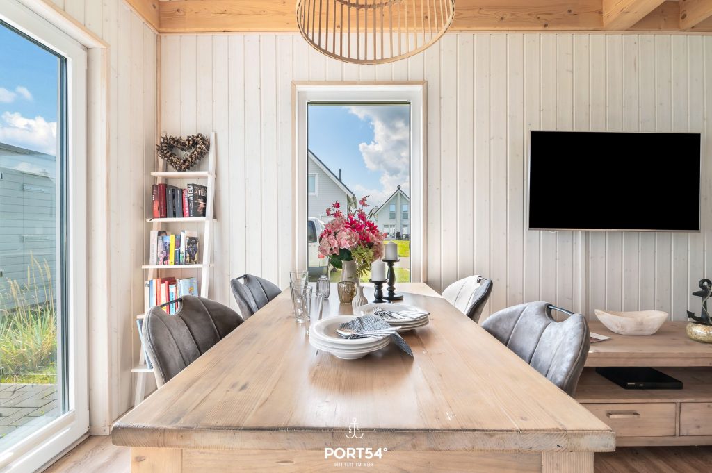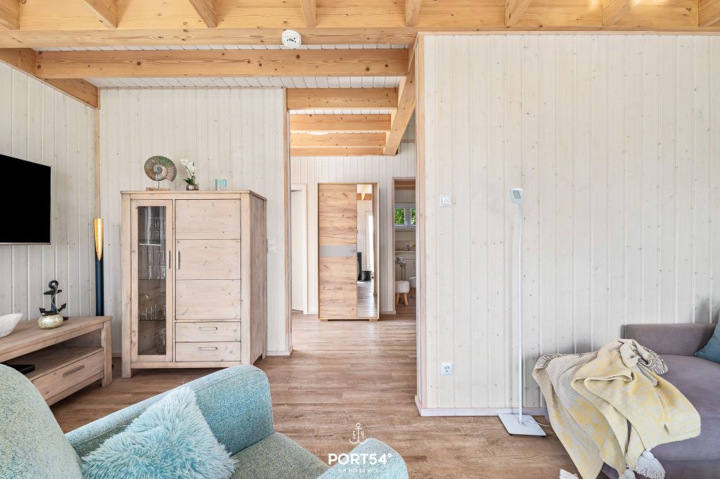 Die großen Fenster sorgen für ein lichtdurchflutetes, großzügiges Wohngefühl. Im Wohnbereich kannst Du es Dir auf dem Sofa gemütlich machen, ein gutes Buch lesen oder auf dem Flachbild-TV Deine Lieblingsserie schauen. An kühlen Abenden verbreitet der Kamin eine wohlige Wärme.