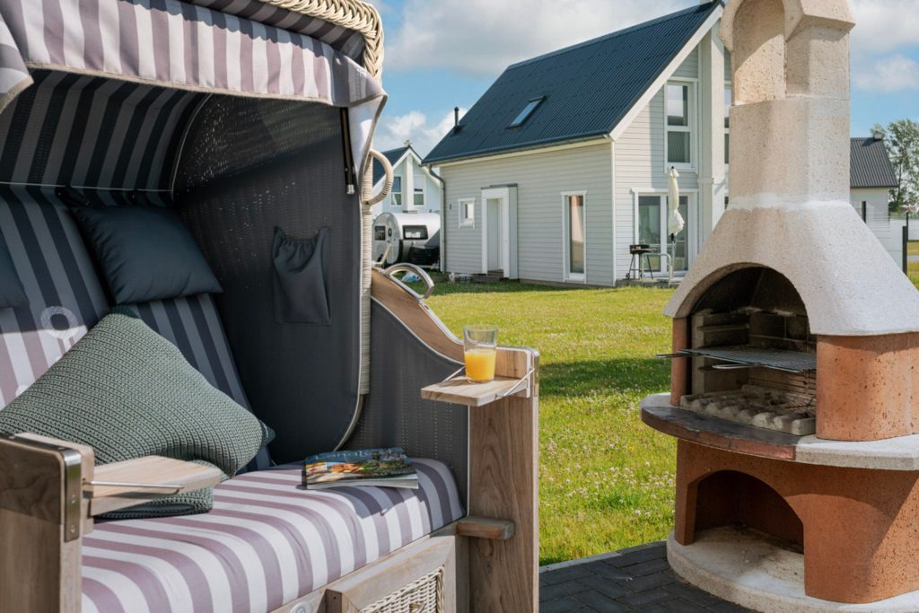 An sonnigen Tagen kannst Du es Dir auf der möblierten Terrasse gemütlich machen. In dem Strandkorb kannst Du Deine Urlaubstage genießen und an lauen Sommerabenden mit der Familie die Tage auf der Terrasse ausklingen lassen.