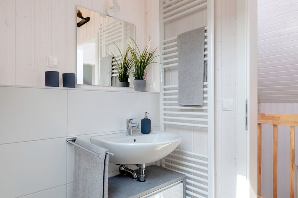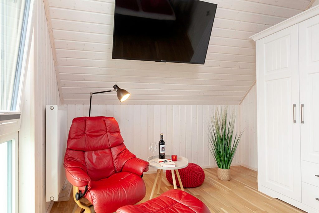 Ein Badezimmer befindet sich im Erdgeschoss und ist mit einer ebenerdigen Dusche und dem Highlight, einer Infrarot-Sauna, ausgestattet. Hier kannst Du Dich an kalten Tagen aufwärmen und entspannen!