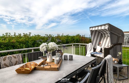 An sonnigen Tagen kannst Du es Dir auf der möblierten Terrasse gemütlich machen. Im Strandkorb kannst Du Deine Urlaubstage genießen und an lauen Sommerabenden mit der Familie die Tage auf der Terrasse ausklingen lassen.