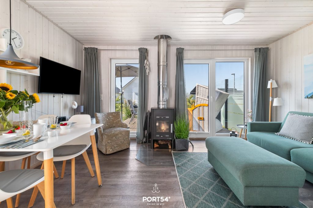 Genieße die Abende im Wohnbereich vor dem Kamin mit einem guten Buch oder schaue Deine Lieblingsserie auf dem Flachbild-TV. Die Couch lässt sich zu einem Schlafsofa umfunktionieren (140 x 200 cm) und bietet somit zwei Schlafplätze für Kinder. Die voll ausgestattete Küchenecke lässt keine Wünsche offen. Hier kannst Du Dich und Deine Familie kulinarisch verwöhnen.