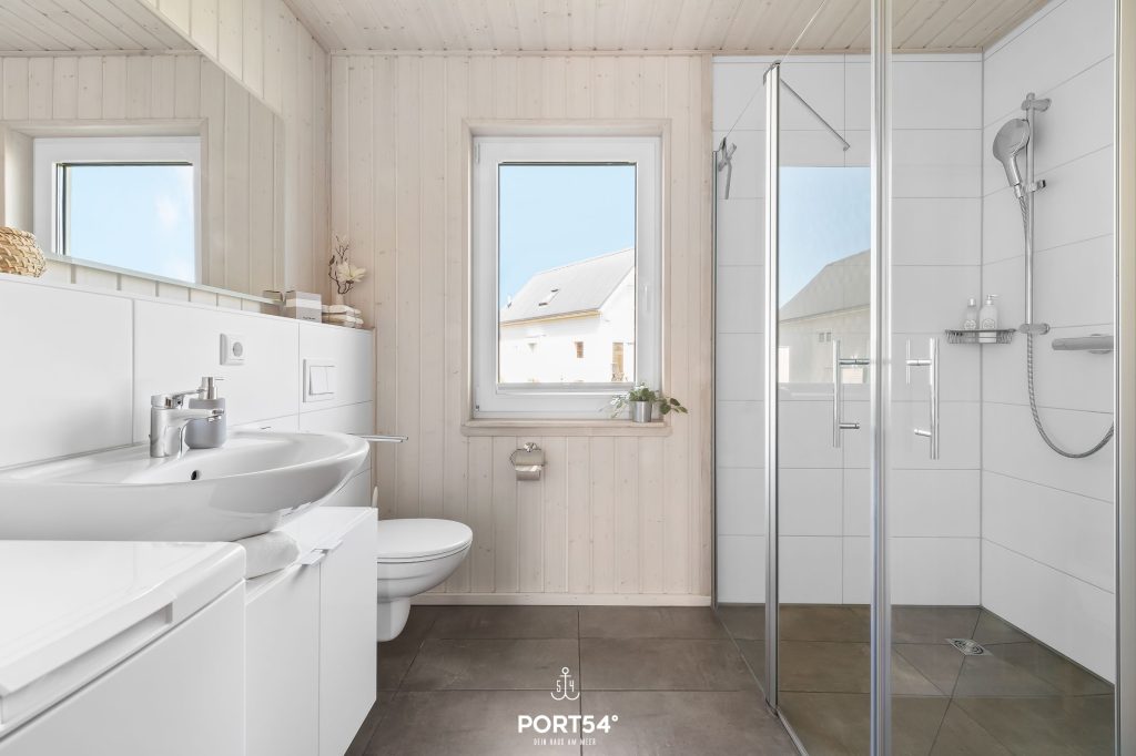 Im Bad erwartet Dich eine große ebenerdige Dusche, ein WC, ein Waschbecken, eine Waschmaschine und als Highlight eine Infrarotkabine. Hier kannst Du Dich nach langen Strandspaziergängen aufwärmen und entspannen.