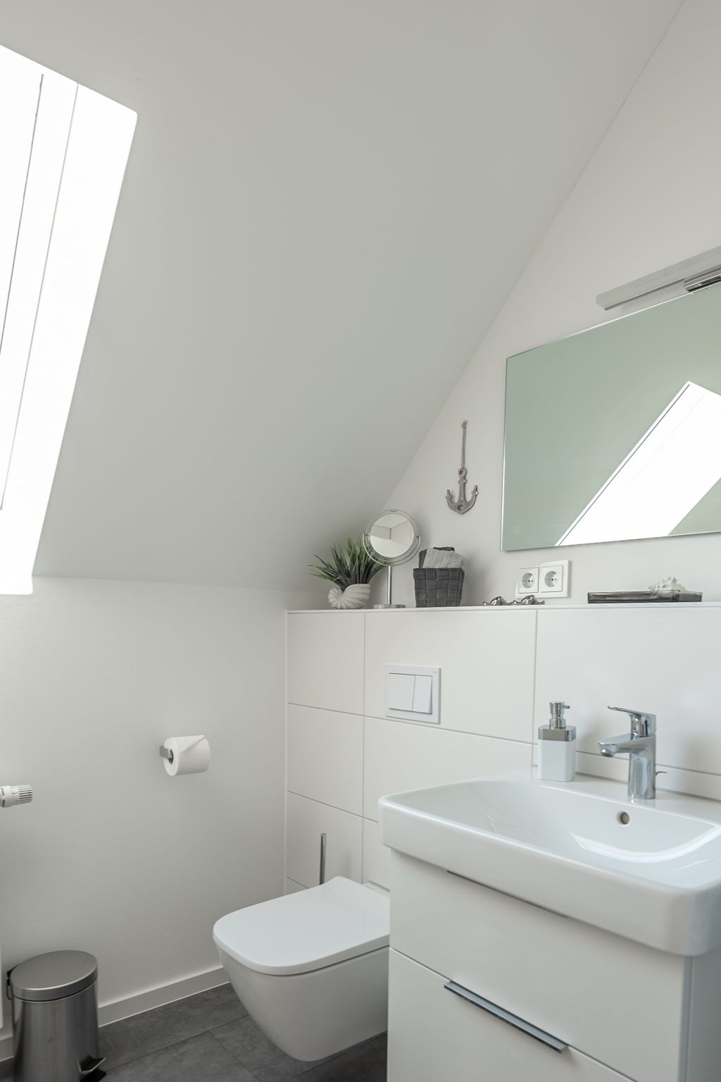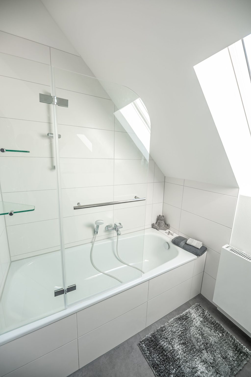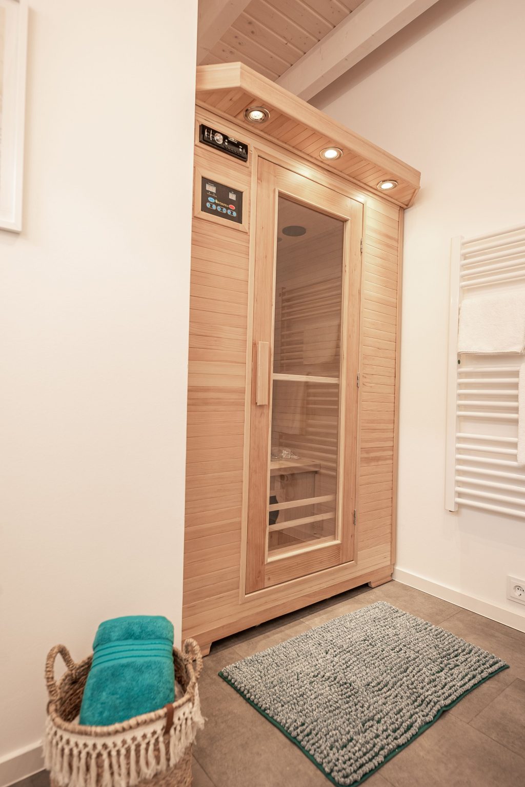 Das Badezimmer im Erdgeschoss bietet dir mit der Infrarot-Sauna einen besonderen Wohlfühlfaktor. Im Obergeschoss lädt das zweite Badezimmer mit Badewanne dazu ein, nach einem erlebnisreichen Urlaubstag zu entspannen und die Seele baumeln zu lassen.