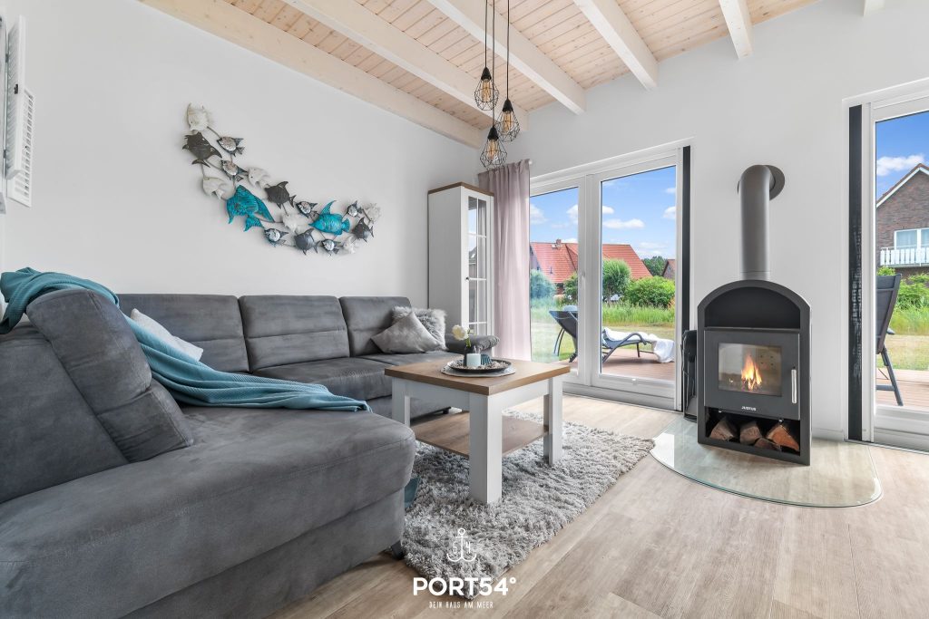 Im Haus erwarten dich zwei gemütliche Schlafzimmer, ein offener Wohn- und Essbereich mit angrenzender, voll ausgestatteter Küche sowie zwei Badezimmer. Der helle Wohnbereich lädt dazu ein, gemeinsam Zeit zu verbringen, zu entspannen und den Alltag hinter sich zu lassen. Besonders in der kalten Jahreszeit zeigt das „Strandhuus“ seinen besonderen Charme: Der Kamin sorgt für wohlige Wärme und eine behagliche Atmosphäre, während die Infrarot-Sauna im Erdgeschoss zusätzlichen Wellnesskomfort bietet. Nach einem Spaziergang an der frischen Nordseeluft kannst du es dir hier wunderbar gemütlich machen und neue Energie tanken.