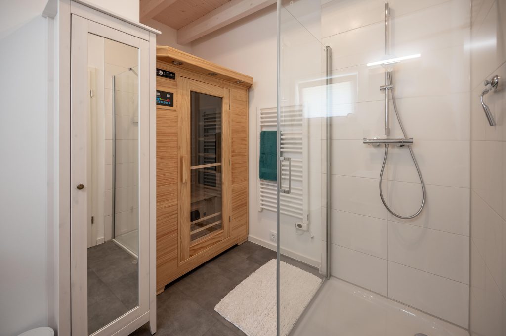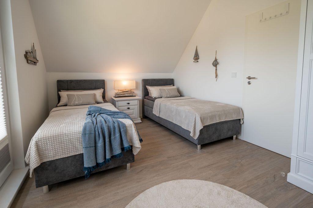 Das Ferienhaus ist für bis zu 4 Personen ausgelegt und verfügt über 2 Schlafzimmer sowie 2 Badezimmer, jeweils mit Dusche und Badewanne sowie WC. Die Aufteilung über zwei Etagen sorgt für eine angenehme Wohnatmosphäre mit ausreichend Rückzugsmöglichkeiten. Das Haus ist eine Nichtraucher Unterkunft.