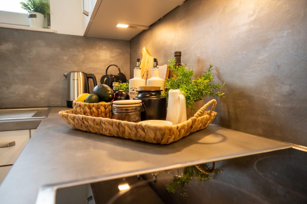 Die separate Küche ist vollständig ausgestattet und bietet Dir alles, was du für Deinen Aufenthalt benötigst. Dazu gehören Cerankochfeld, Backofen, Mikrowelle, Spülmaschine, Kühlschrank mit Gefrierfach sowie Kaffeemaschine und Nespresso Maschine, Wasserkocher und Toaster.