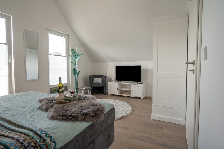 Strand und Nordsee erreichst Du in nur etwa 500 Metern, perfekt für Spaziergänge und erholsame Stunden am Wasser. Auch die Familienlagune Perlebucht ist nur wenige Gehminuten entfernt und bietet Dir vielfältige Möglichkeiten für Bade- und Freizeitspaß. Restaurants, Einkaufsmöglichkeiten und weitere Angebote sind ebenfalls schnell erreichbar.