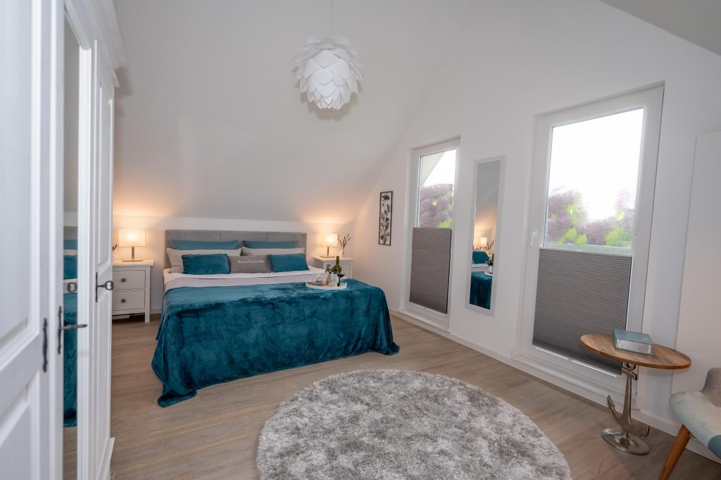 Das Ferienhaus bietet Dir auf 88 m² ausreichend Platz für bis zu 5 Personen. Es verfügt über 2 Schlafzimmer, 2 Badezimmer mit Dusche und Badewanne sowie ein zusätzliches WC. Der Wohnbereich ist gemütlich gestaltet und lädt mit Sofa und Essbereich zum Verweilen ein. Ein Kaminofen sorgt besonders an kühleren Tagen für eine angenehme und behagliche Atmosphäre. Dank Zentralheizung genießt Du das ganze Jahr über ein angenehmes Raumklima.
