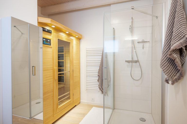 Ein besonderes Highlight ist der private Wellnessbereich mit Infrarotkabine, in dem Du nach einem aktiven Tag wunderbar entspannen kannst.