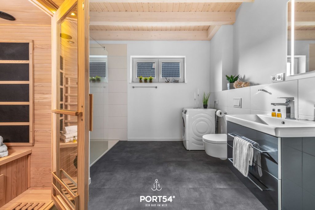 Ein besonderes Highlight ist der private Wellnessbereich Infrarotkabine, der Dir entspannte Momente nach einem erlebnisreichen Tag bietet. Das Badezimmer verfügt über eine bodengleiche Dusche sowie zusätzlich über eine Badewanne.