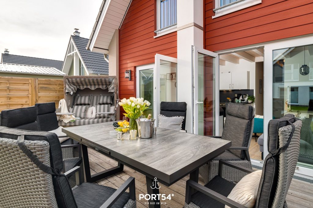 Auch der Außenbereich überzeugt mit einer großzügigen Terrasse und einem Garten. Hier stehen Dir Gartenmöbel, ein Strandkorb, Sonnenliegen und ein Sonnenschirm zur Verfügung. Ein Elektrogrill lädt zu gemütlichen Grillabenden ein. Zusätzlich bietet Dir ein privater Schuppen ausreichend Platz, um Fahrräder oder Wassersport Equipment sicher abzustellen.