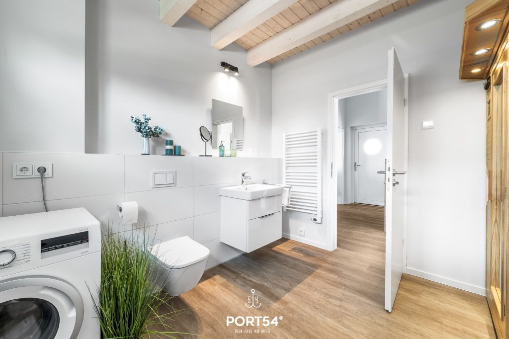 Die Badezimmer sind modern ausgestattet: Es gibt eine Badewanne, mehrere Duschen und ein Gäste-WC, sodass Familien oder Gruppen den Morgen stressfrei starten können. Weitere praktische Details wie Waschmaschine, Wäscheständer, Bügeleisen, Bügelbrett und Wasserkocher sorgen dafür, dass der Alltag im Urlaub leicht bleibt. Treppengitter und Fliegengitter machen das Haus besonders familienfreundlich. Für die Kleinsten stehen ein Kinderhochstuhl und ein Babybett bereit.