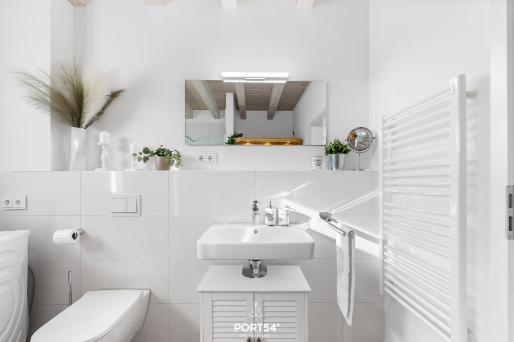 Die drei Schlafzimmer schenken Dir Rückzugsmöglichkeiten, während die Kinder spielen oder Ihr gemeinsame Stunden im Wohnbereich verbringt. Die beiden Badezimmer, eines davon mit Badewanne, und das zusätzliche Gäste-WC machen den Alltag unkompliziert. Wohlige Wärme verströmt die Zentralheizung mit Fußbodenheizung, und der Kaminofen sorgt für eine gemütliche, einladende Atmosphäre, selbst an windigen Nordseetagen. Sicherheit wird großgeschrieben: Das Haus ist Nichtraucherunterkunft und verfügt über Rauchmelder.
