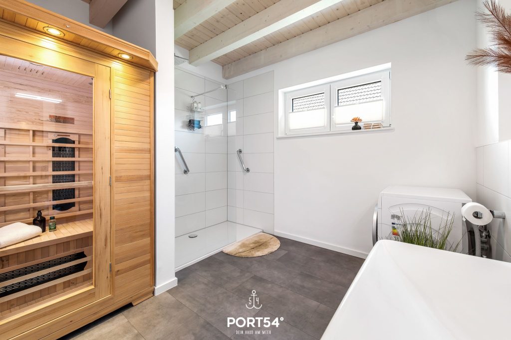 Ein besonderes Highlight ist die hauseigene Sauna, die Dir jederzeit entspannte Wellnessmomente ermöglicht – perfekt nach einem Tag an der Nordsee.