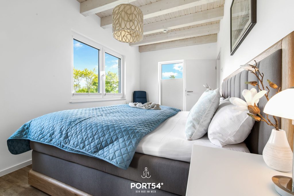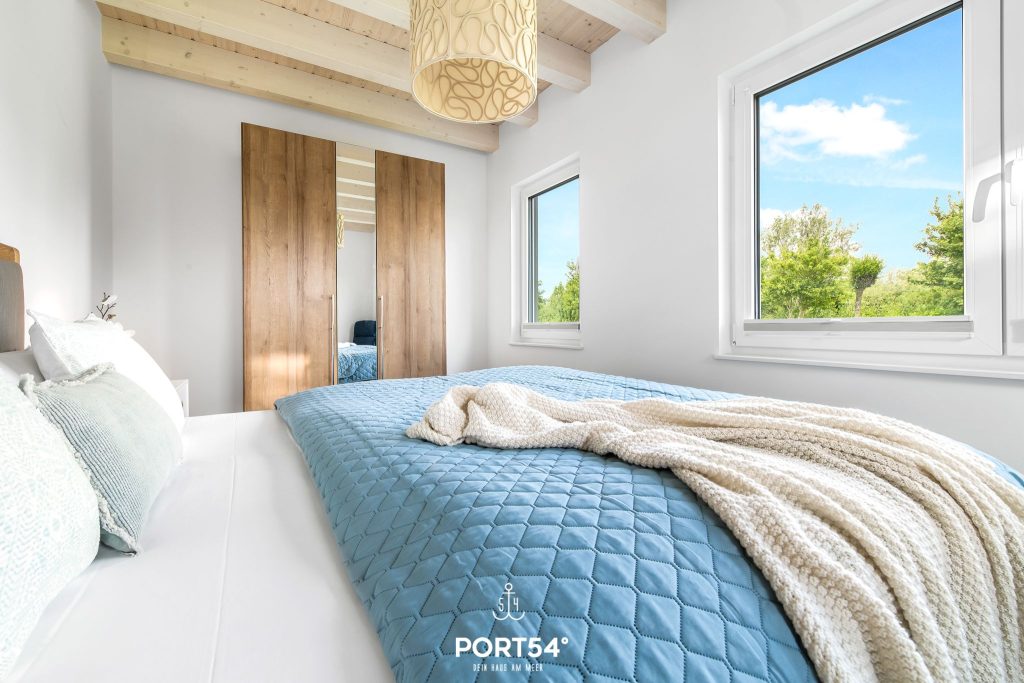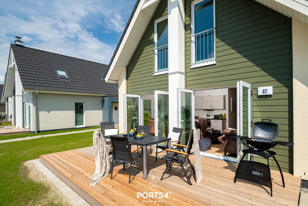 Die Terrasse mit Gartenmöbeln, Sonnenschutz und Liegewiese lädt zum Verweilen im Grünen ein. Ein Elektrogrill steht ebenfalls bereit. Für Deine Ausrüstung gibt es einen privaten Schuppen, in dem Du Fahrräder oder Wassersport-Equipment sicher unterstellen kannst. Zwei private Parkplätze direkt am Haus sorgen für zusätzlichen Komfort.