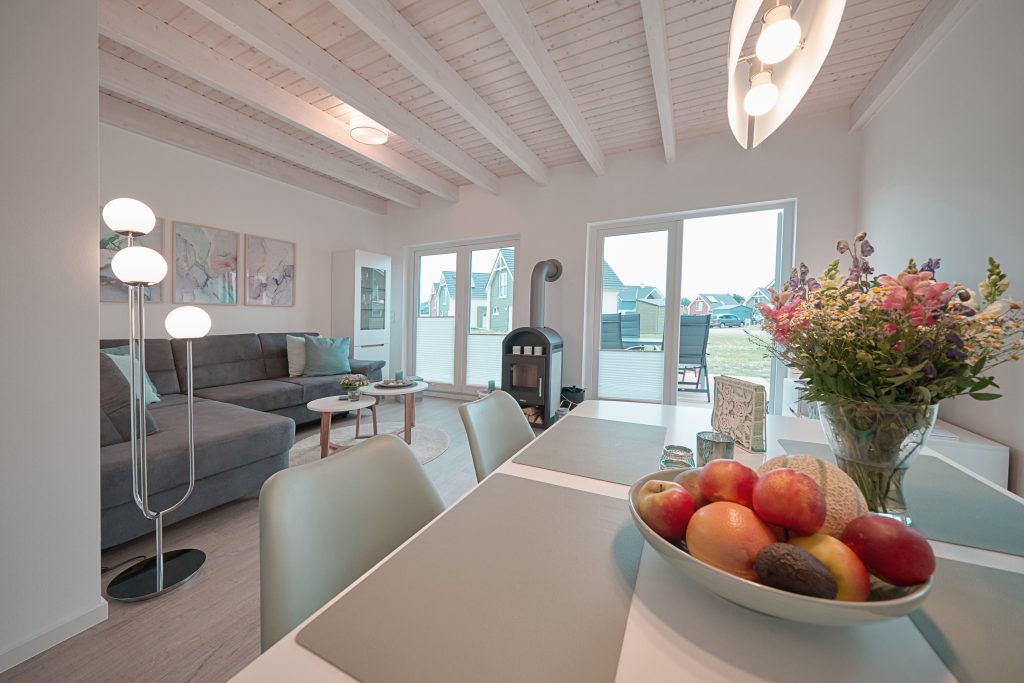 Das Hyggehaus hat uns absolut gut gefallen. Gleich bei der Ankunft war das Haus schon schön warm, was nach der längeren Anfahrt im Winter sehr angenehm war. Die beiden Betten waren, wie gebucht, in beiden Schlafzimmern bezogen und die Plissees soweit hochgezogen, dass gleich bei Eintritt ein Sichtschutz bestand. Das Haus war sehr sauber und wegen der Nähe zur Nordsee mit kleinen maritimen Dekoartikeln wohnlich gestaltet. Es ist sehr angenehm, dass sich auf beiden Etagen ein Badezimmer befindet, wobei die Sauna im Erdgeschoss von uns ausgiebig genutzt wurde. Die Küche ist mit den unterschiedlichsten Utensilien sehr gut ausgestattet, sodass wir an beiden Abenden gekocht haben. Auch der Kamin im Wohnzimmer verbreitet eine gemütliche Atmosphäre.