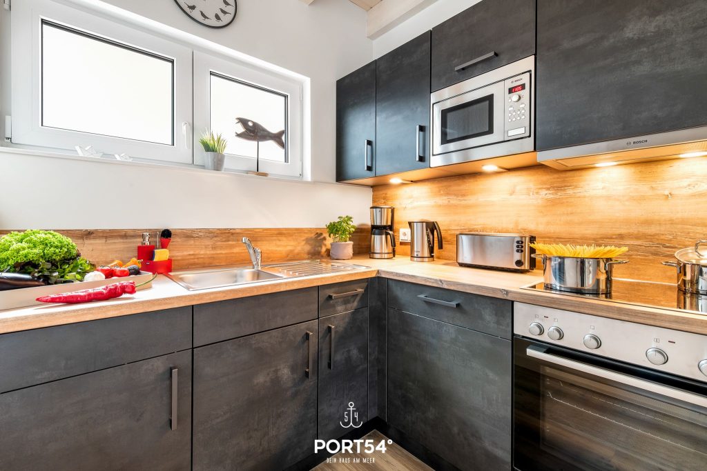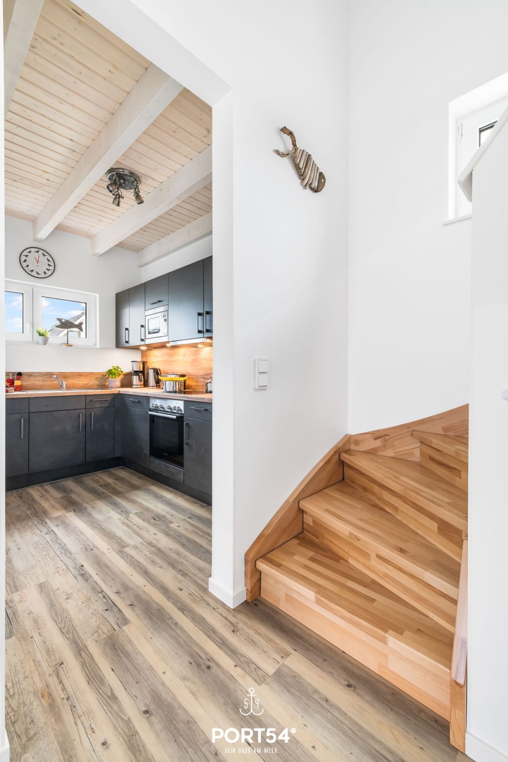 Im Erdgeschoss erwartet Dich ein offener Wohn- und Essbereich mit großem Esstisch und gemütlichem Sofa. Lehne Dich zurück, genieße Magenta TV oder einen spannenden Film auf dem Flachbild-TV und lass den Alltag hinter Dir. An kühleren Tagen sorgt der Kaminofen für eine besonders wohltuende Atmosphäre. Die voll ausgestattete Küche lässt keine Wünsche offen: Filterkaffeemaschine, Nespresso, Wasserkocher, Toaster, Mikrowelle und Geschirrspüler stehen bereit – perfekt für gesellige Kochabende oder ein entspanntes Frühstück.