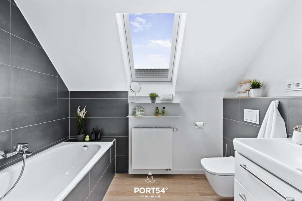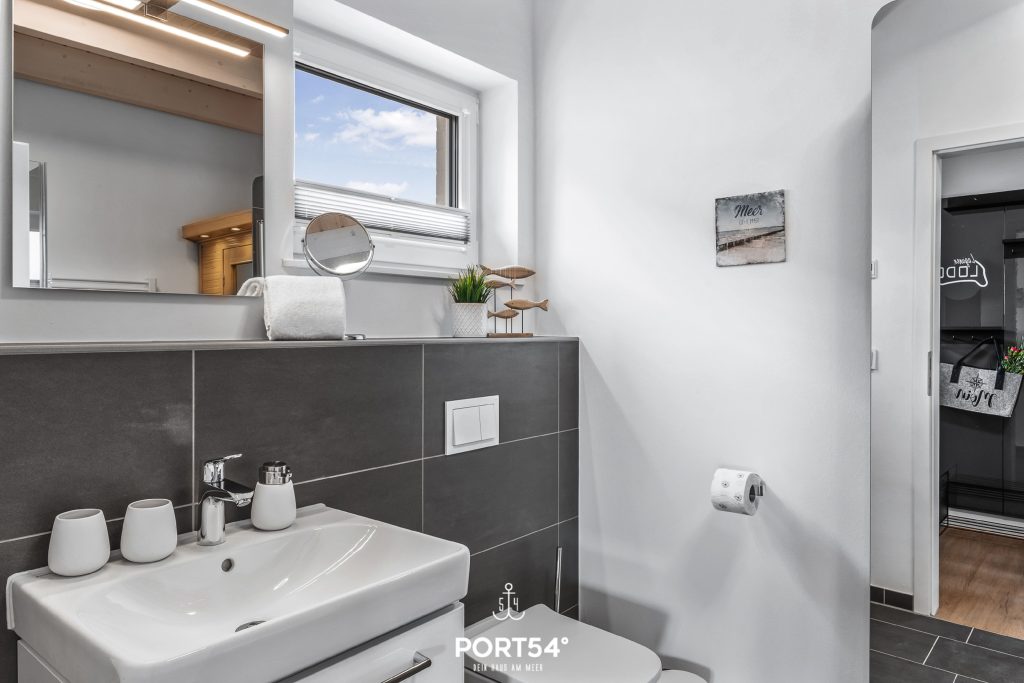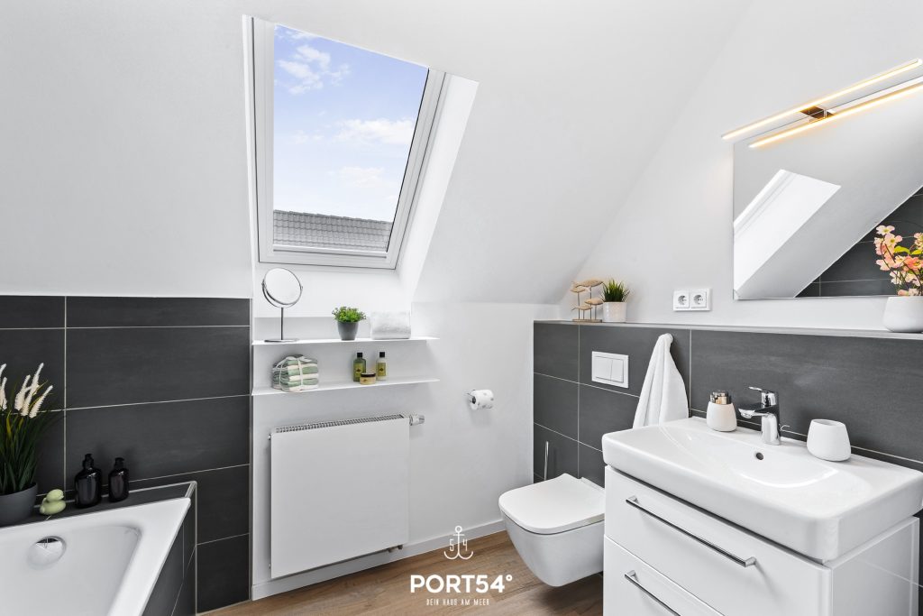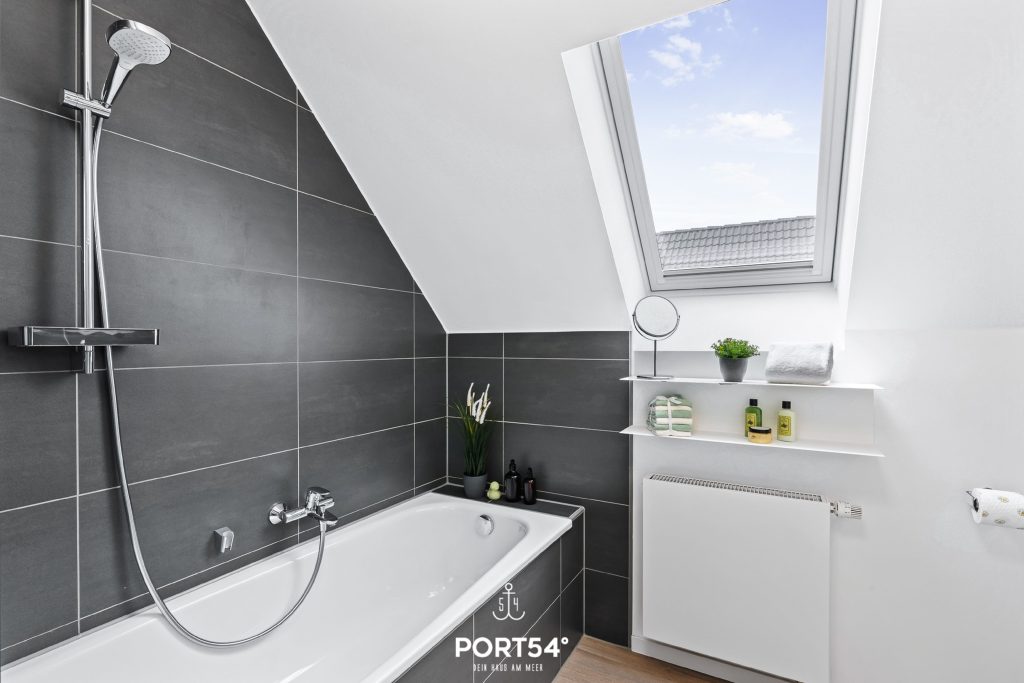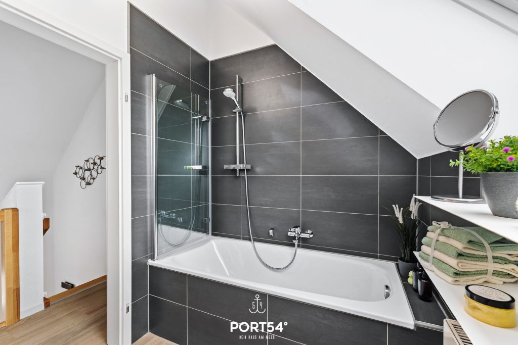 Im Untergeschoss findest Du ein modernes Badezimmer mit ebenerdiger Dusche sowie eine wohltuende...