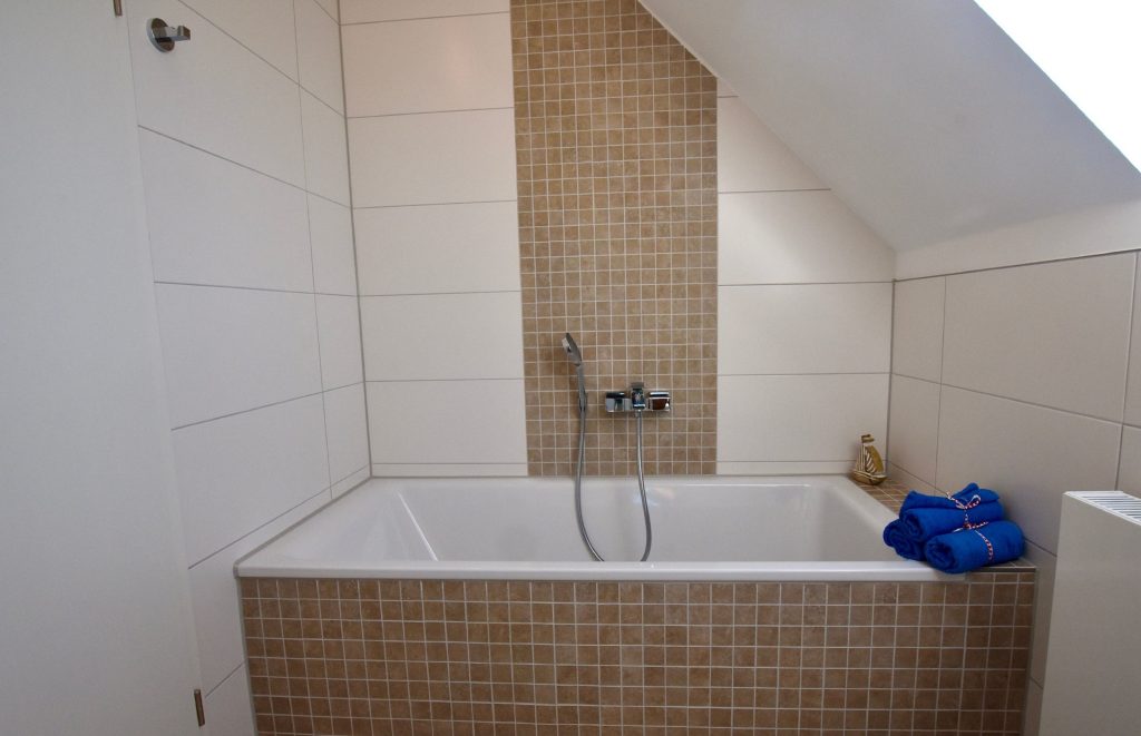 Im Obergeschoss findest Du zwei gemütliche Schlafzimmer, die erholsame Nächte garantieren. Ein Schlafzimmer ist mit einem komfortablen Doppelbett (180x200 cm) ausgestattet, das zweite mit zwei Einzelbetten (je 90x200 cm). Beide Räume verfügen über Flatscreen-TV, Insektenschutzgitter, DVD-Player und eine Musikanlage. Zusätzlich steht Dir im Obergeschoss ein weiteres Badezimmer mit Badewanne zur Verfügung.