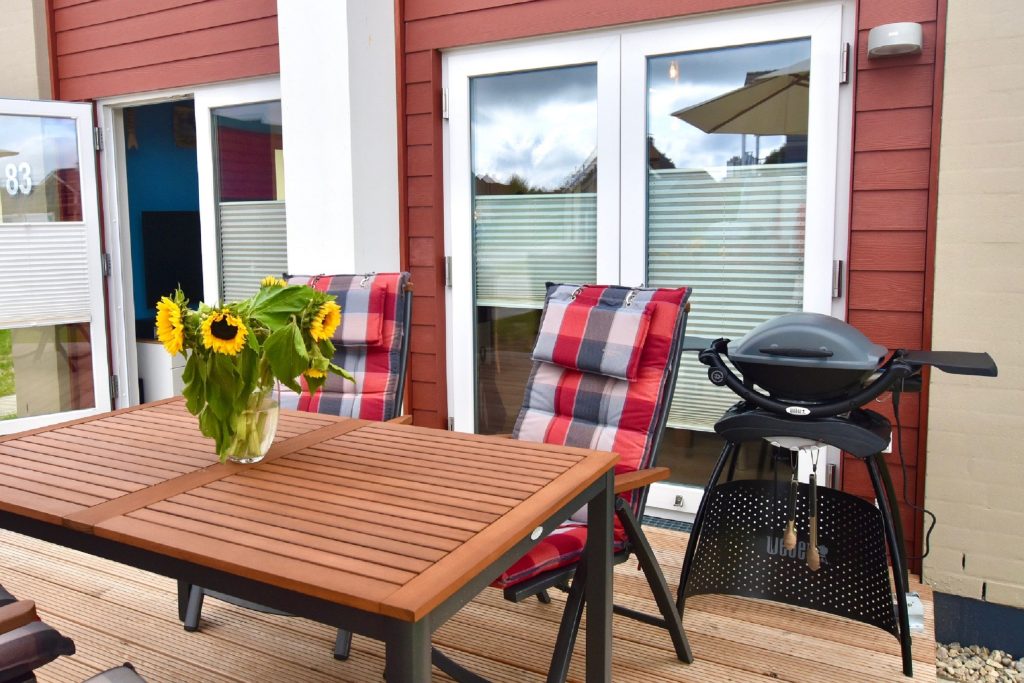 Die Süd-Terrasse lädt zum Verweilen ein – ob beim Frühstück an der frischen Nordseeluft, beim Grillen oder entspannt im Strandkorb mit einem Glas Wein. Für deine Fahrräder oder Wassersport-Ausrüstung steht Dir ein privater, abschließbarer Schuppen direkt am Haus zur Verfügung. Zusätzlich gibt es Fahrradbügel sowie zwei kostenfreie PKW-Stellplätze.