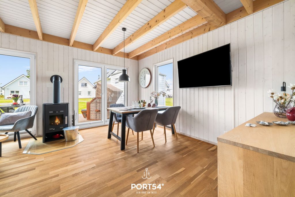 Nach langen Strandspaziergängen kannst Du auf dem gemütlichen Sofa vor dem Kamin entspannen, ein gutes Buch lesen oder Deine Lieblingsserie auf dem Flachbild-TV schauen.