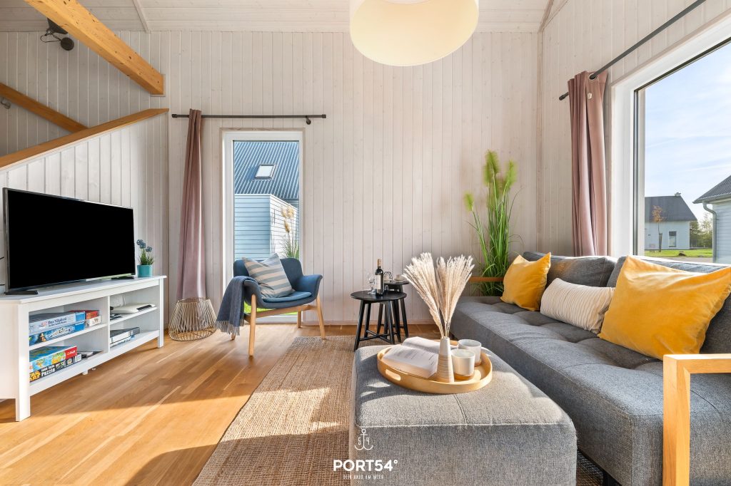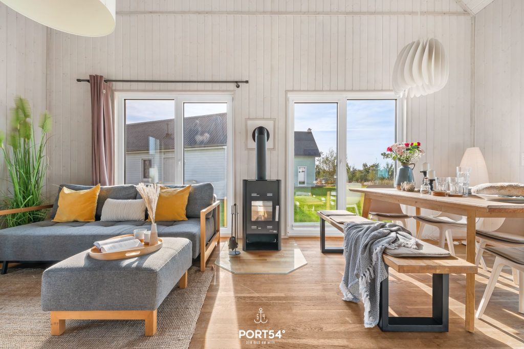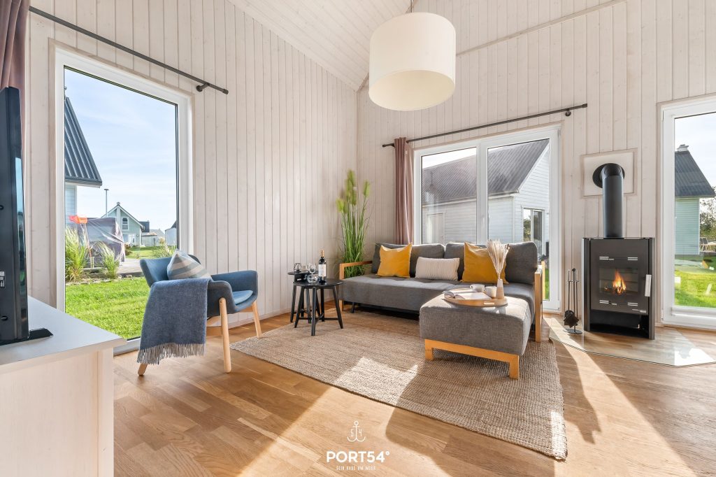 Nach langen Strandspaziergängen kannst Du auf dem gemütlichen Sofa vor dem Kamin entspannen und Deine Lieblingsserie auf dem Flachbild-TV schauen oder gemütlich ein Buch lesen. Die Couch lässt sich mit wenigen Handgriffen zu einem Schlafsofa umfunktionieren, sodass für ein Kind eine weitere Schlafmöglichkeit geboten wird.